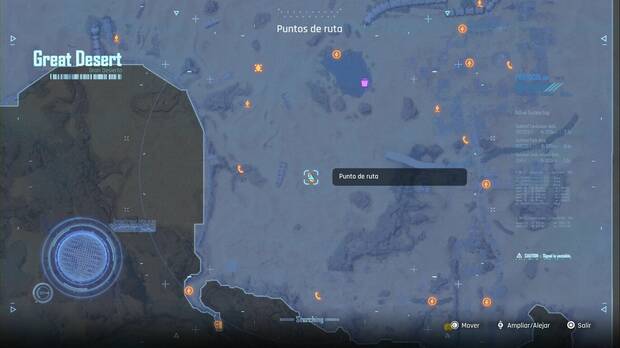 Finalmente, el último mapeado inicial del Gran Desierto será el del cuadrante inferior derecho, la zona este-sudeste: