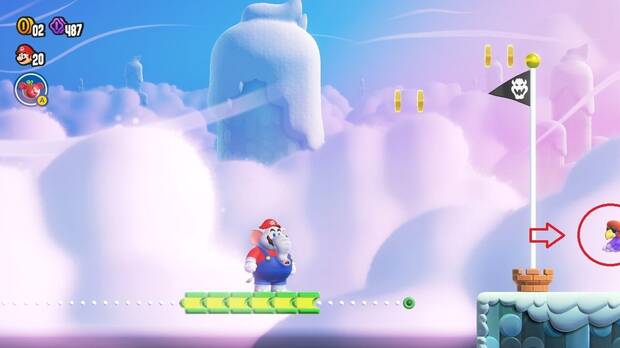 - Localización: después del punto de control toca el capullo de flor azul para que aparezca la Flor Maravilla del nivel.