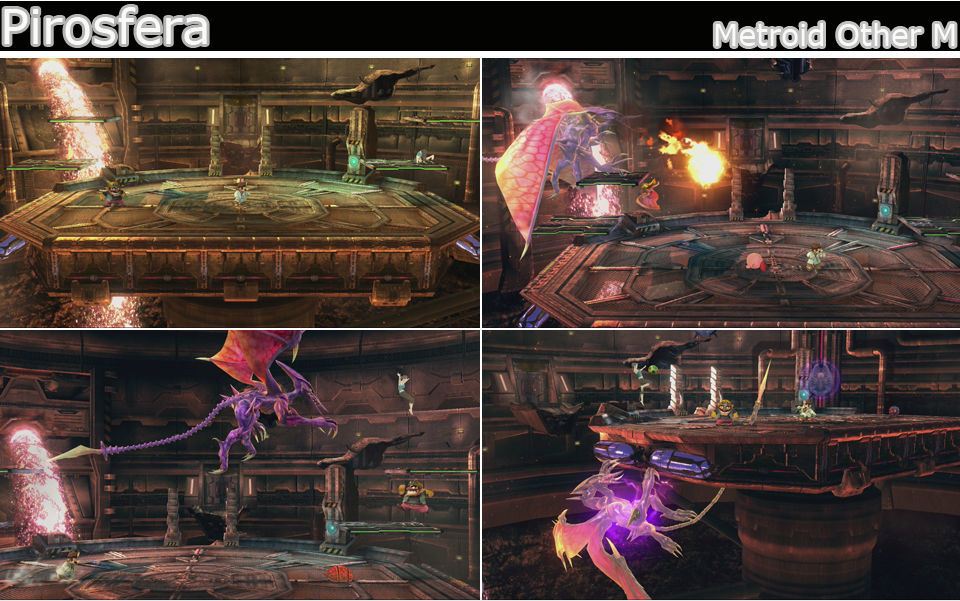 Escenario con Jefe, nada más y nada menos que Ridley, el escenario es pequeño con un par de plataformas a cada lado aparece desde el fondo volando embistiendo a los luchadores en la zona central, se coloca arriba en uno de los lados y comienza a tirar bolas de fuego (cuidado con sus ondas), también puede posarse sobre el escenario y embestir con 3 zarpazos o con uno simple que recorre todo el escenario, se pueden cubrir, cuidado que también puede golpear hacia atrás con su cola, puede ponerse por debajo de la base a los lados y atacar con su peligrosa cola desde abajo, cuidado que no nos alcance, este Jefe es el que más dura de los 3, si le vencemos puede ayudarnos si vuelve a aparecer, derrotarle cuenta como noqueo adicional en un combate por tiempo.