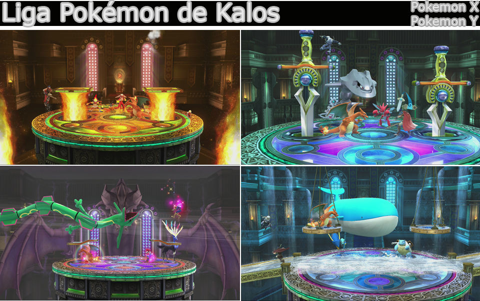 -Sala del Dragón, al fondo aparece un dragón y varios pokemons , el dragón puede disparar bolas de energía que no se pueden cubrir así que atentos, también en esta sala puede aparecer Rayquaza (una serpiente gigante eléctrica) y quien se choque con ella saldrá electrocutado y despedido, si sale aprovecha para tirar a los luchadores hacia la zona donde salgan rayos.