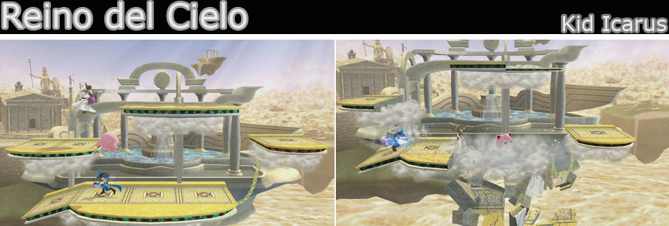 Un escenario pequeño y peligroso, las plataformas no pueden ser atravesadas, por lo que se crean muchos rebotes, pero con los golpes se rompen y solo se quedan las nubes que las sostienen, podemos atravesarlas. A las plataformas nos podemos agarrar a las nubes no, por abajo se mueve una plataforma que puede salvarnos en alguna ocasión