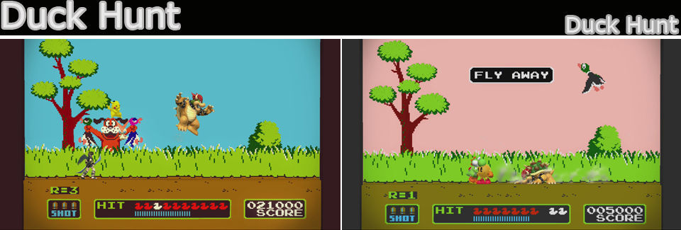 Como en el juego original, saldrán volando patos que podemos golpear para subir la puntuación (no sirve para nada, pero quien se resiste, alguna vez pueden dejar caer objetos) si alguno se escapa saldrá el mítico Fly Away y el perro se reirá de nosotros. Cuando el perro recoja los que hayamos abatido, elevará al luchador sobre el que salga, hay que aprovechar si se peude para golpear desde abajo.