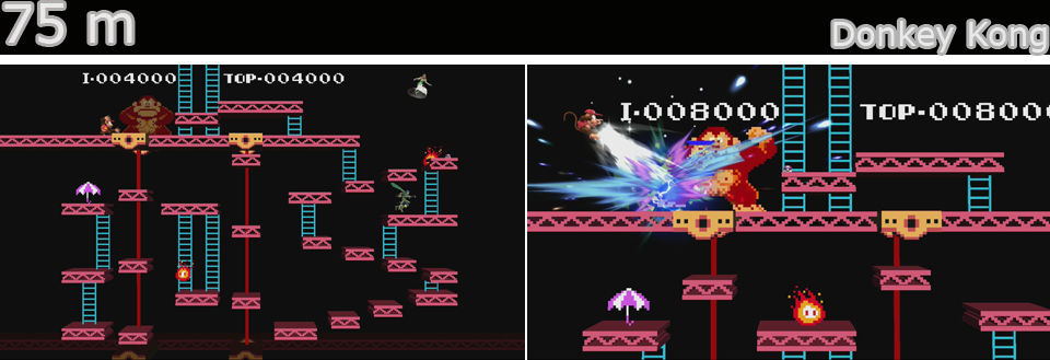 Que subo Paulina!, muy bueno también este homenaje a Donkey, cuidado con las bolas de fuego que van girando por las plataformas, arriba del todo a la izquierda esta Donkey y cuando suene la musiquita clásica este se adelanta y peude producir smash meteórico si nos da, además tira barriles comienzan a salir barriles a gran velocidad por toda la zona de arriba y caen por la derecha, cuidado que también pueden hacer Smash meteórico.
