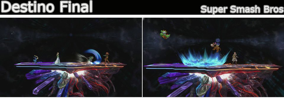 Un escenario sin bordes y una base muy amplia, al comienzo es plano, pero a medida que avanza el combate se van levantando diferentes plataformas, aprovecha los laterales.