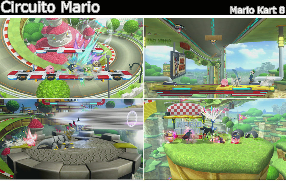 Encima de una torre, con bordes a los lados. En otra zona donde los Karts van con ingravidez y pasan por arriba del escenario, intenta lanzar a los rivales con Smash hacia arriba y en otra zona que es una columna con caídas a cada lado.