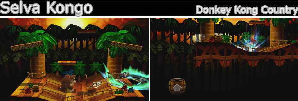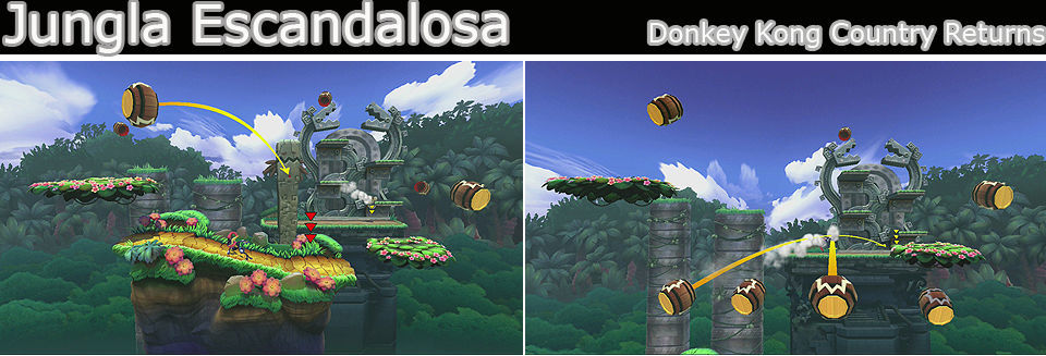 Un escenario que como en el juego original tiene otra zona en el fondo, nos movemos entre ellas con los barriles, cuando el suelo empiece a temblar es que se va a desmoronar el escenario y hay que estar atento a las indicaciones para entrar en los barriles, cuando parpadean es que están a punto de desaparecer, aparte hay barriles girando constantemente para movernos entre los planos.
