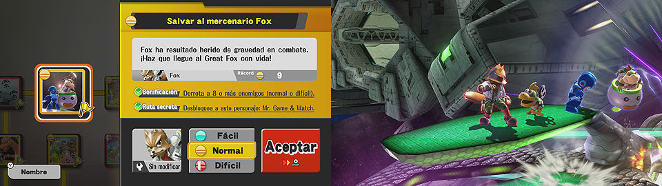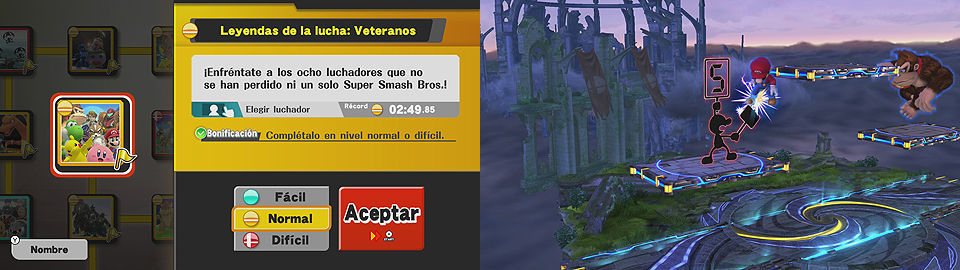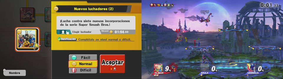 Lucha contra siete nuevas incorporaciones de la serie Super Smash Bros!