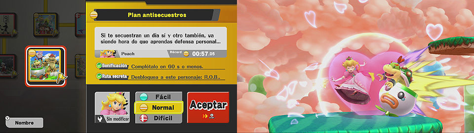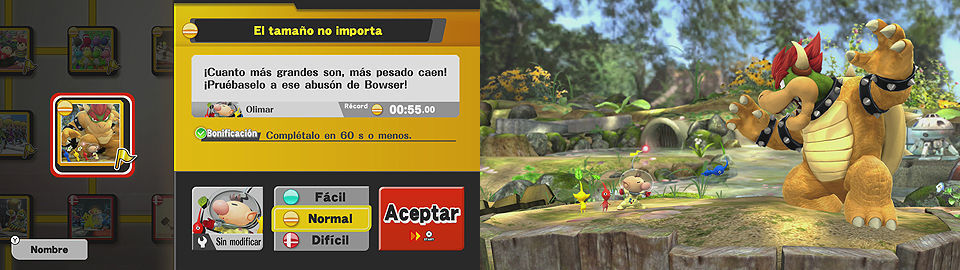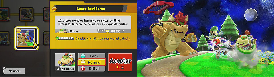 Un combate cara a cara con Bowser, pero no nos piden nivel para la bonificación, lo sacaremos rápidamente.