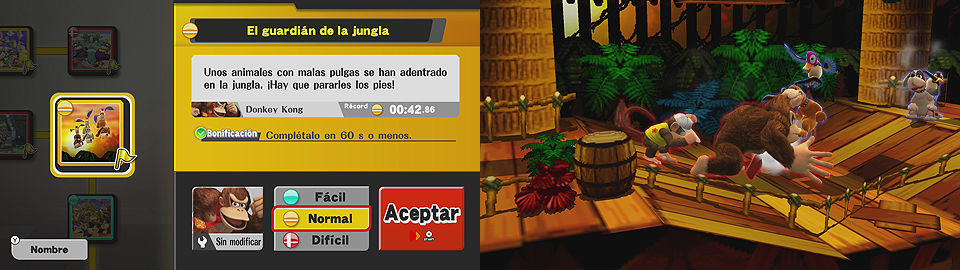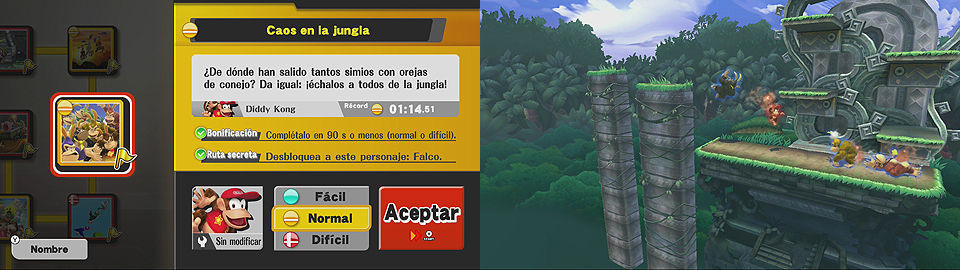 Nos enfrentamos con Diddy Kong a un ejército de 20 Donkeys Kong con orejas de conejo equipadas, en el escenario hay que estar pendientes de los barriles para cambiar de plano en la lucha no vayamos a caernos y usar el ataque especial lateral de Diddy, con este ataque nos quitamos de encima rápido a los enemigos, aún así para completarlo en 90 segundos tiene que salirnos bien la partida y no esperar a que los enemigos vengan, sino ir a por ellos