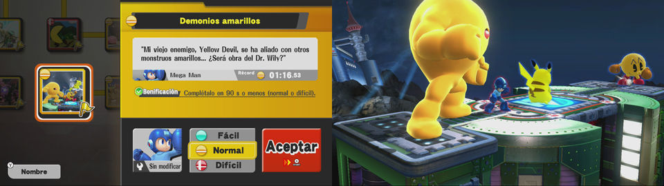 Podemos elegir luchador, nos enfrentamos a 4 famosísimos héroes, Megaman, Sonic, Pac-Man y Mario. Completarlo en nivel difícil para conseguir la bonificación es todo un reto, vencer a los 2 primeros enemigos Megaman y Sonic ya es un reto, Pac-Man es más complicado y Mario es un infierno y solo tenemos una vida. Lo importante es que no se nos amontonen los personajes, matar rápido a Megaman o Sonic, para que no se les una Pac-Man y luego con Mario igual. Tras muchos intentos para completarlo, diría que es el único Evento en el que recomendaría probar con personajes personalizados, algún objeto de recuperación de energía, el de recuperación al cubrirse y recuperación tras lanzamiento pueden servir para rebajar los intentos.