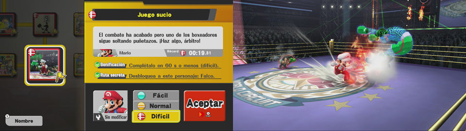 Controlamos a Mario y tenemos que evitar que un Little Mac con champiñón elimine a Little Mac, este no se mueve y esta agachado todo el rato, si le dejamos un segundo el otro puede mandarle a vestuarios de un gancho!. A por él sin piedad, puede llevarnos unos intentos pero no es nada complicado, Smashs a su lado y a proteger a Little Mac como sea