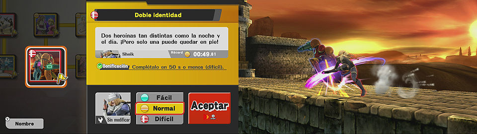 Luchamos contra Samus y luego Samus Zero, controlando a Sheik, y si muere a Zelda, completar la bonificación de este evento tiene su dificultad, hay que matar a Samus muy rápido ya que Samus Zero, nos va a llevar algo más de tiempo. En cualquier caso la estrategia a seguir es muy similar a la bonififcación de "Cuidando las formas Físicas" hay que llevar a los rivales hacia cualquier lado y darles Smashs para sacarlos rápido. Poniéndonos nosotros al fondo y realizando una esquiva les tendremos donde queremos, ahí ya es cuestión de que se zampen un buen Smash y lo completemos