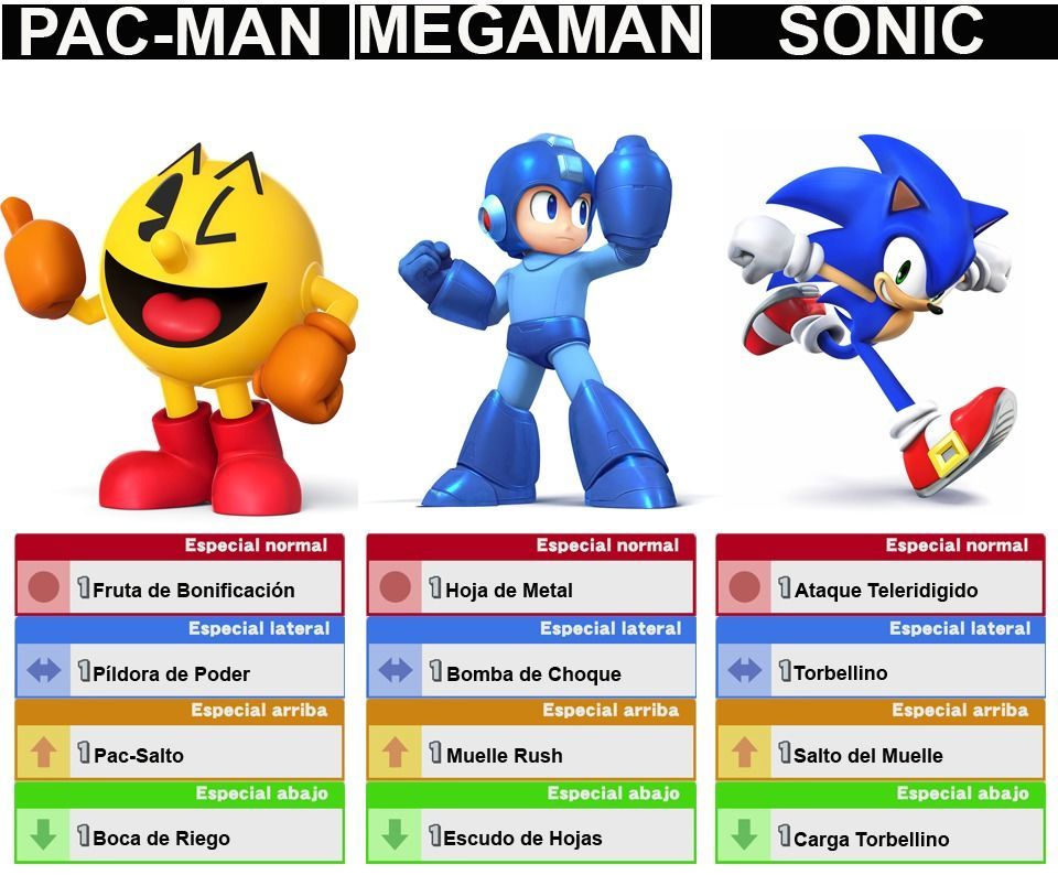 Smash: algo a destacar de Mega Man es que tiene precisamente los Smash que más me gustan o un compendio de las mejores características, el Smash hacia arriba atrapa y golpea por amabas direcciones, el Smash lateral es el de mayor alcance de todo el juego ya que es un disparo cargado y hacia abajo golpea a la vez en ambas direcciones levantando 2 pilares de fuego.