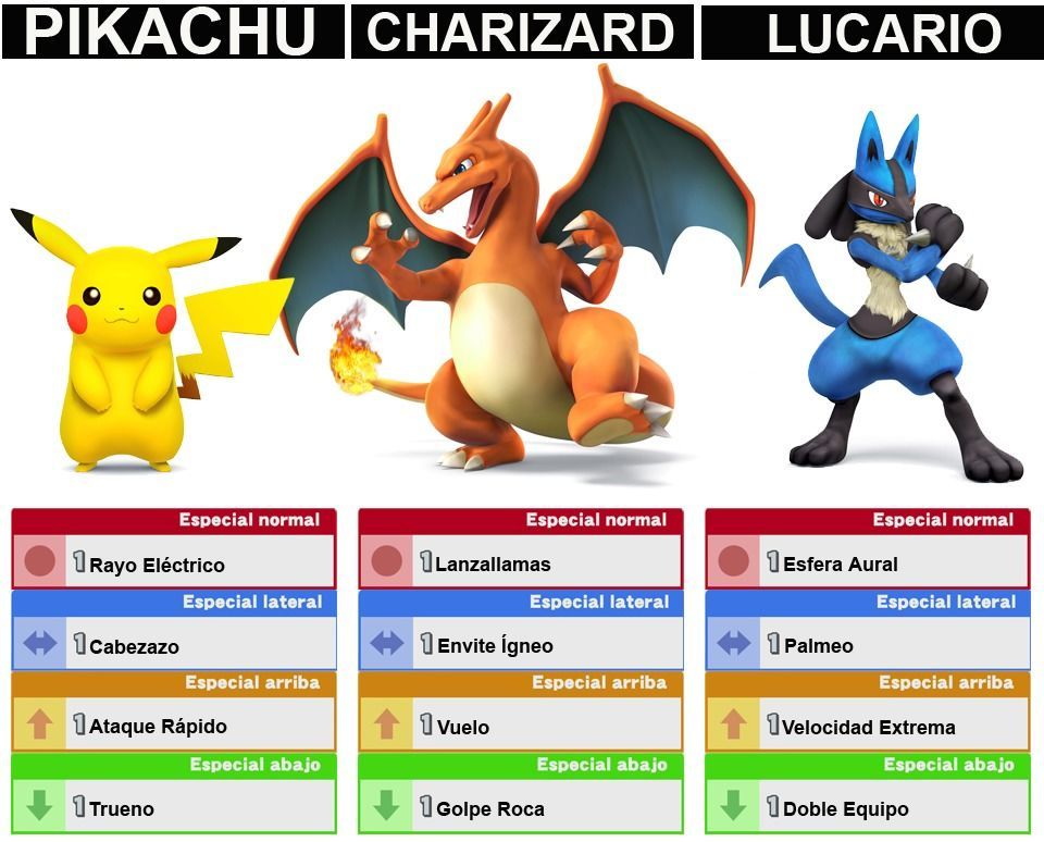 Placaje Eléctrico. Pikachu se convierte en una bola eléctrica que podemos manejar por todo el escenario atravesando plataformas y obstáculos, pulsando el botón crea una explosión más dañina, pero no se puede hacer continuamente.