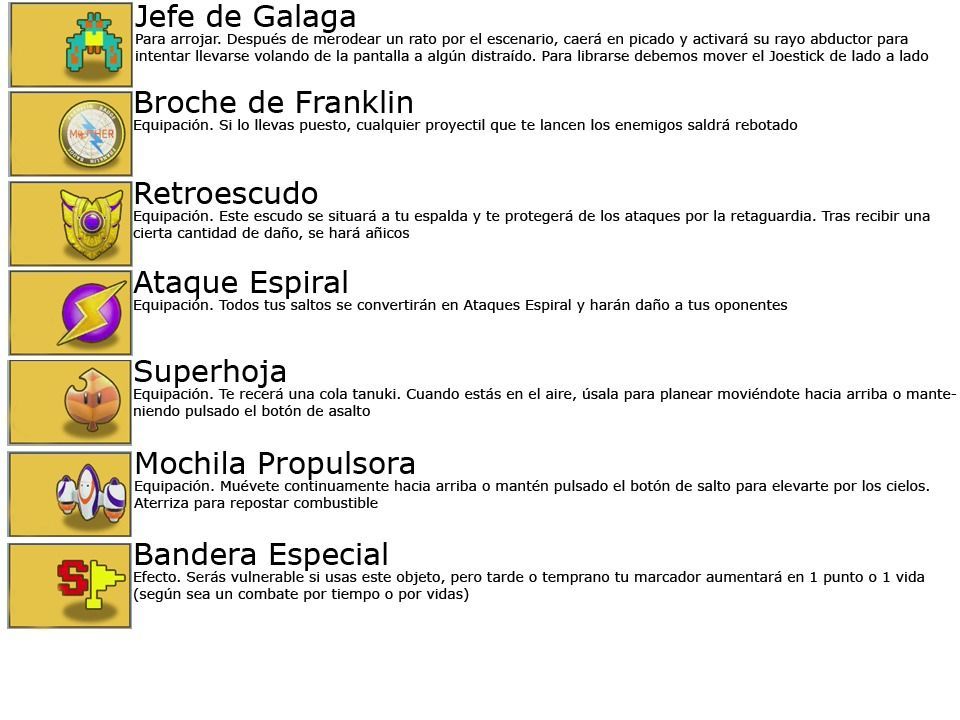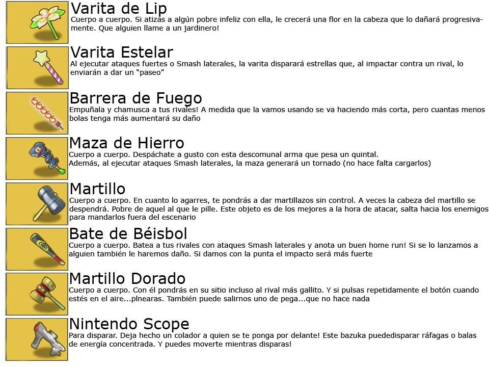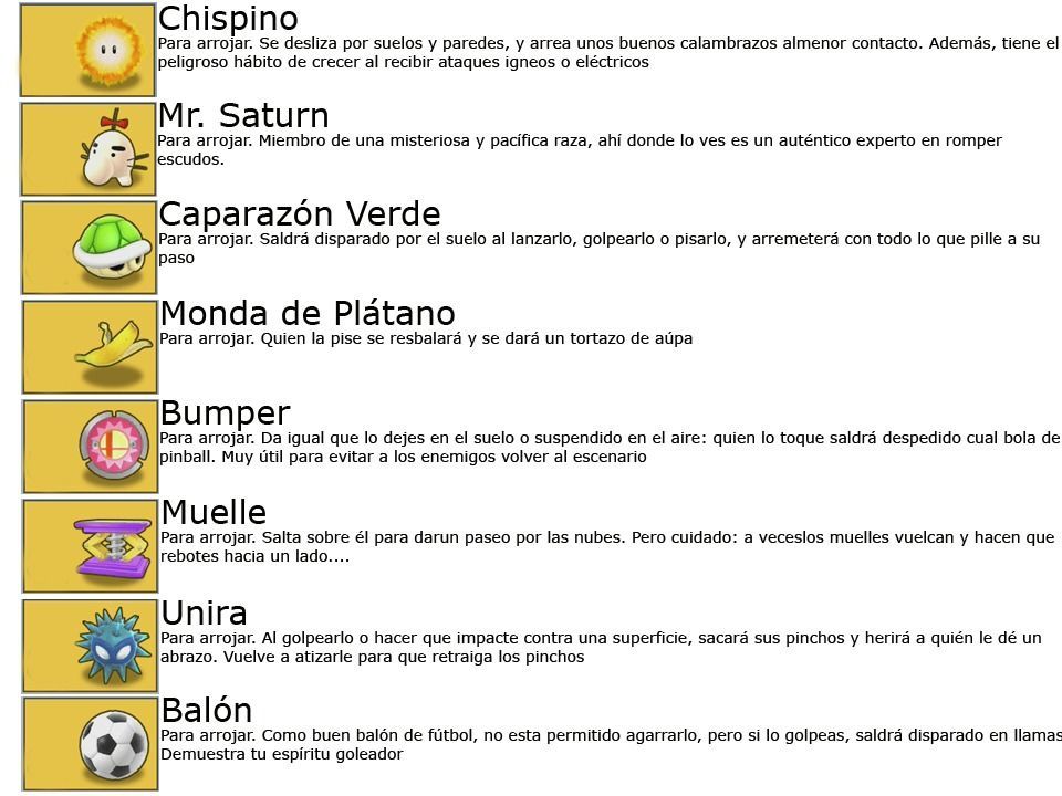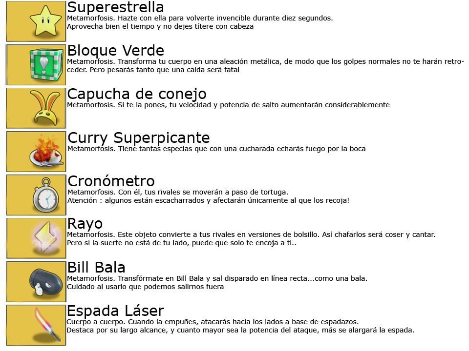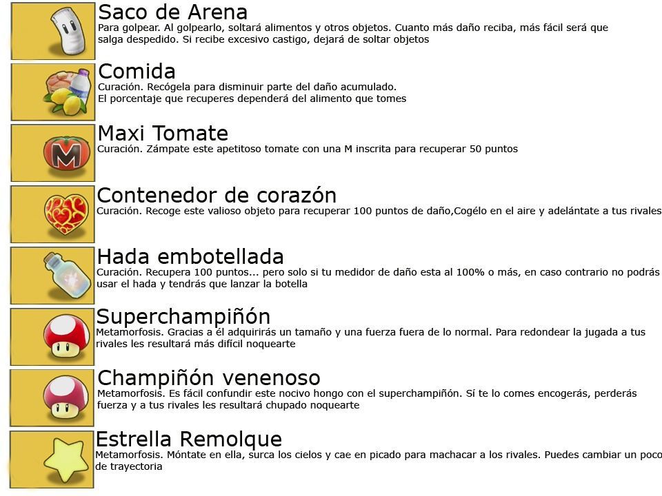 Almacenamiento. Lánzaselos a los rivales o golpéalos para destruirlos y descubrir qué contienen. Pueden ser cajas, barriles, botellas, piñatas, plantas que podemos arrancar del suelo.