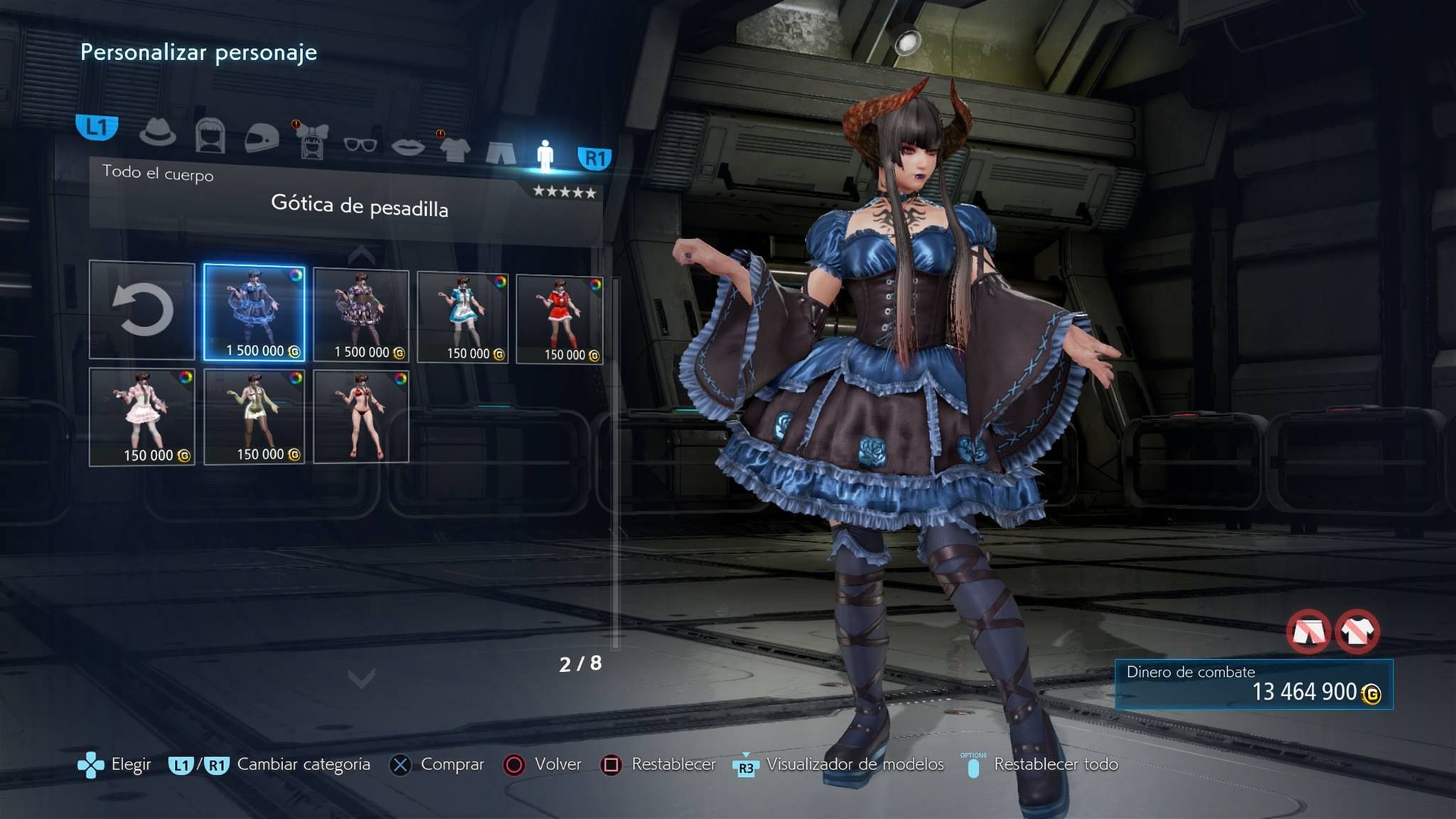 Todo el cuerpo: trajes completos predefinidos, y por tanto, bloquearán la edición de torso y piernas.