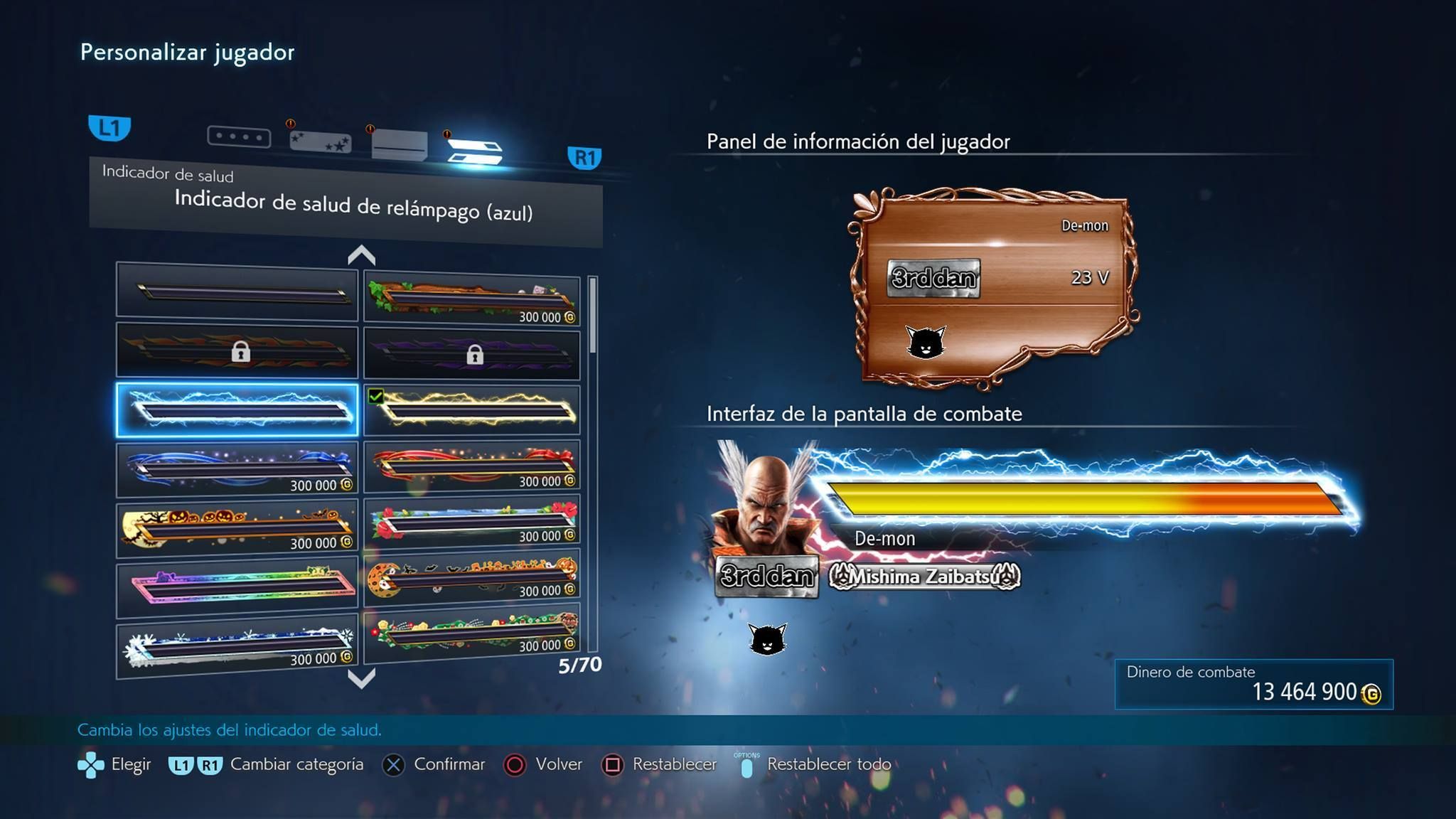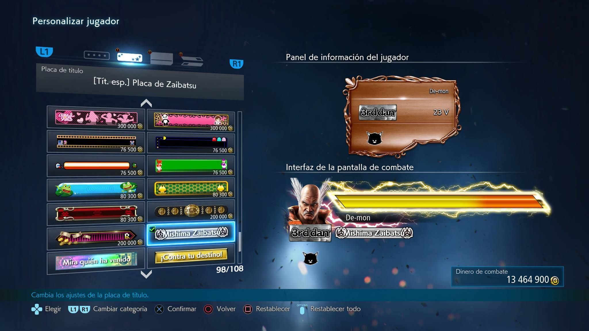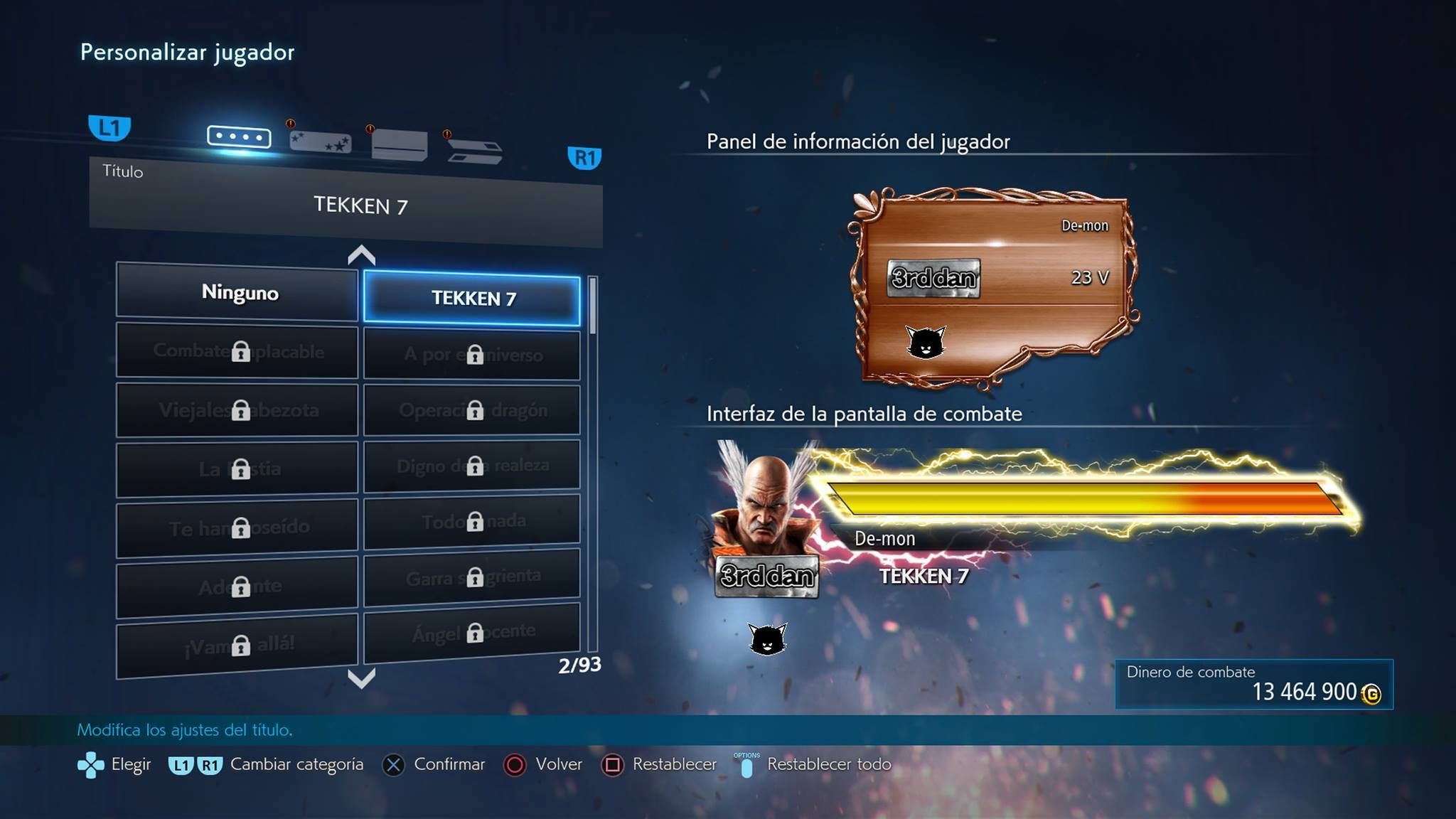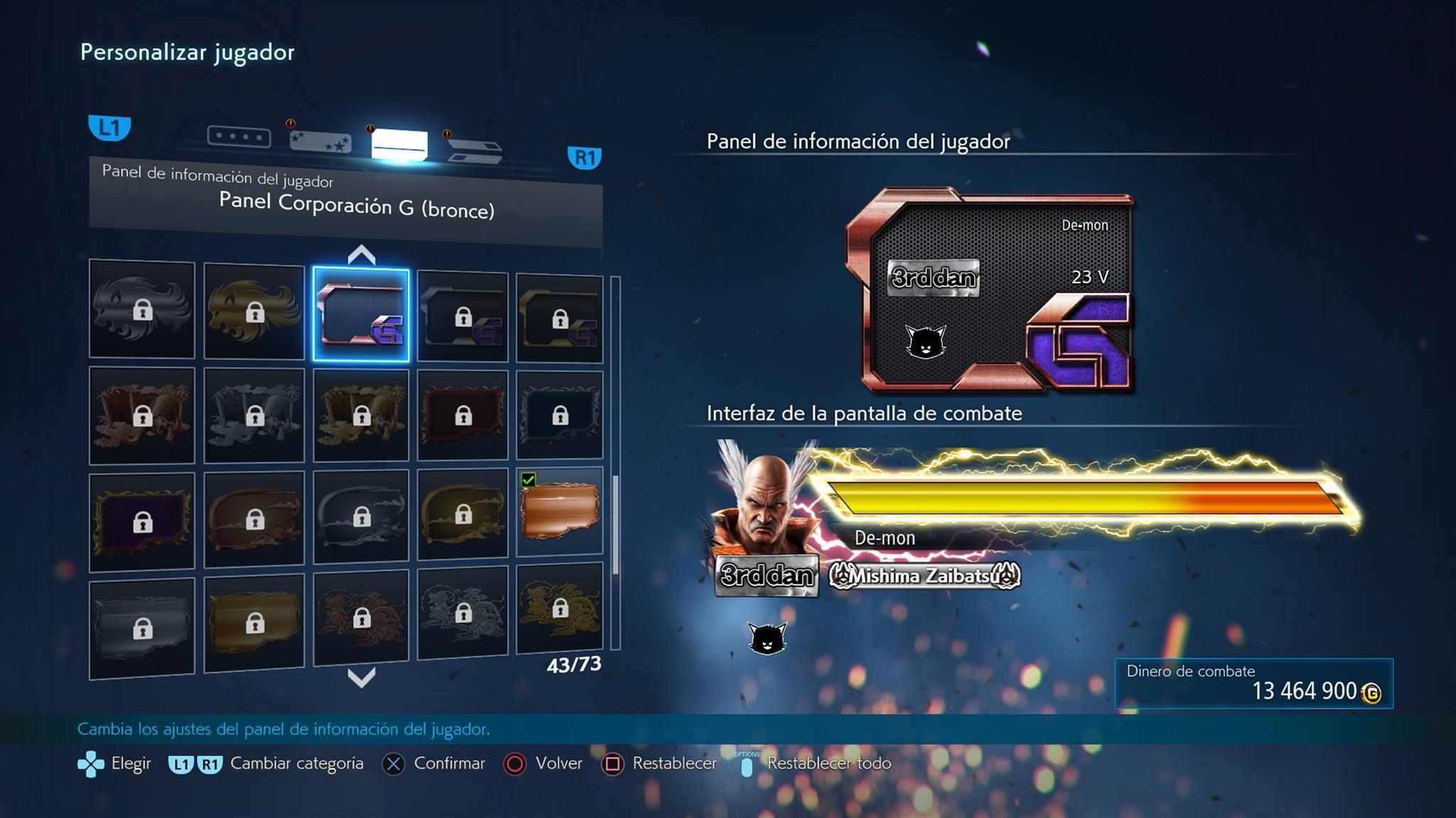 Existen dos tipos de categorías para personalizar: personaje y jugador. Al jugar a Tekken 7 conseguiremos dinero para comprar estos elementos, y a veces se conseguirán las recompensas directamente.