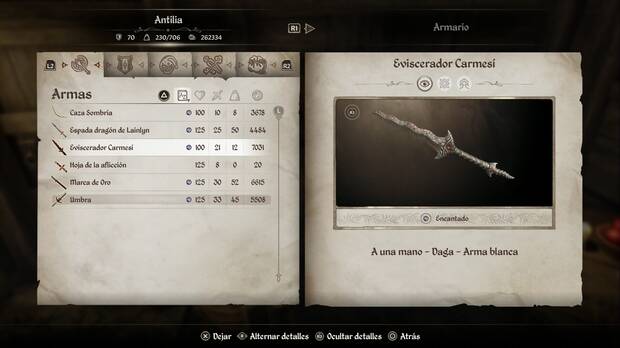 - Que estén encantadas también es una desventaja. El problema de las armas encantadas es que deben recargarse, por lo que te recomendamos que consigas cuanto antes la Estrella de Azura y te hagas con un arma de Trampa de alma para poder tener una fuente de recargas ilimitada.