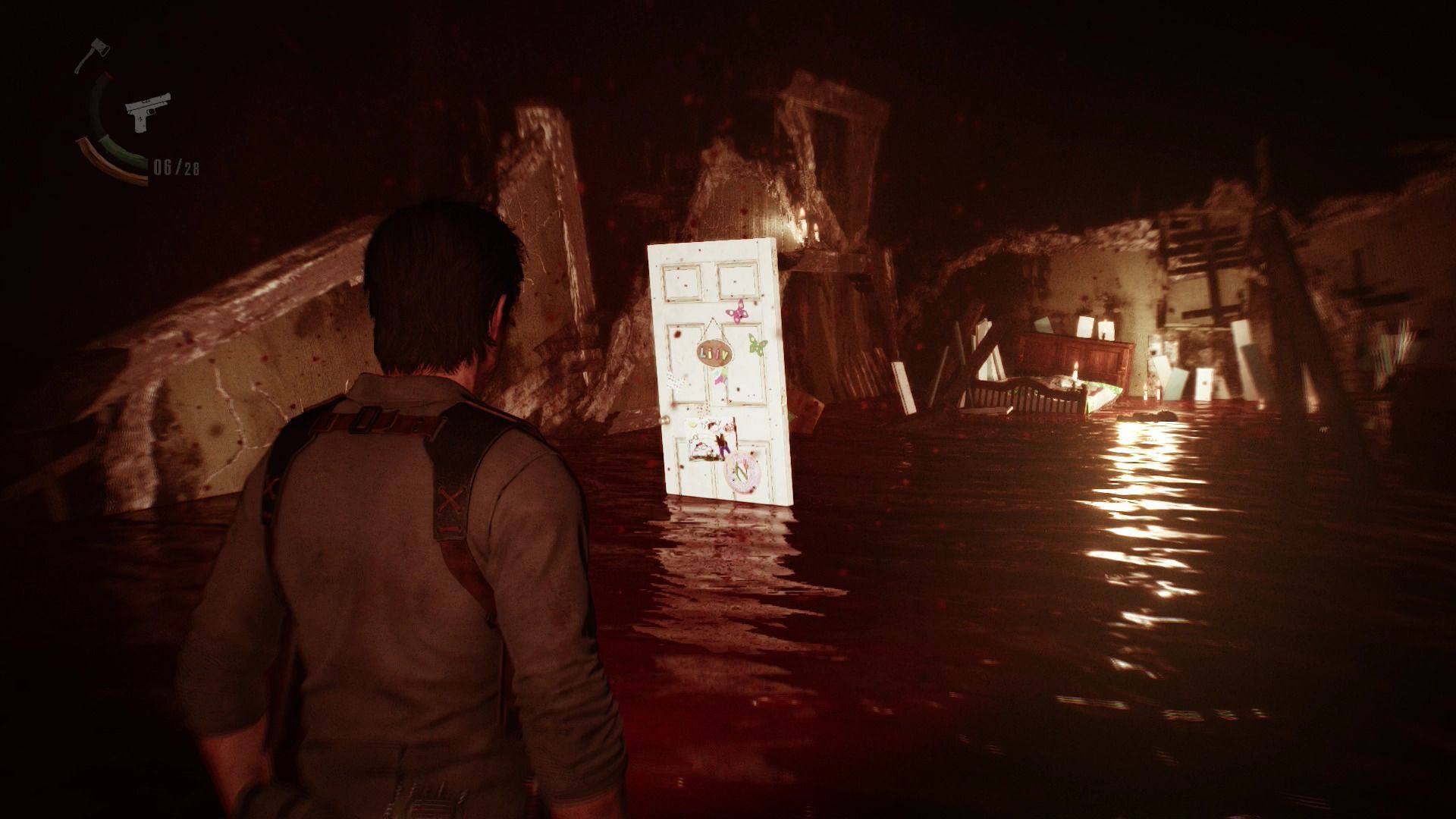 Date la vuelta y sigue el señal hasta llegar al que sería el cuarto de Lily y examina la muñeca que flota en la sangre para tener una escena.