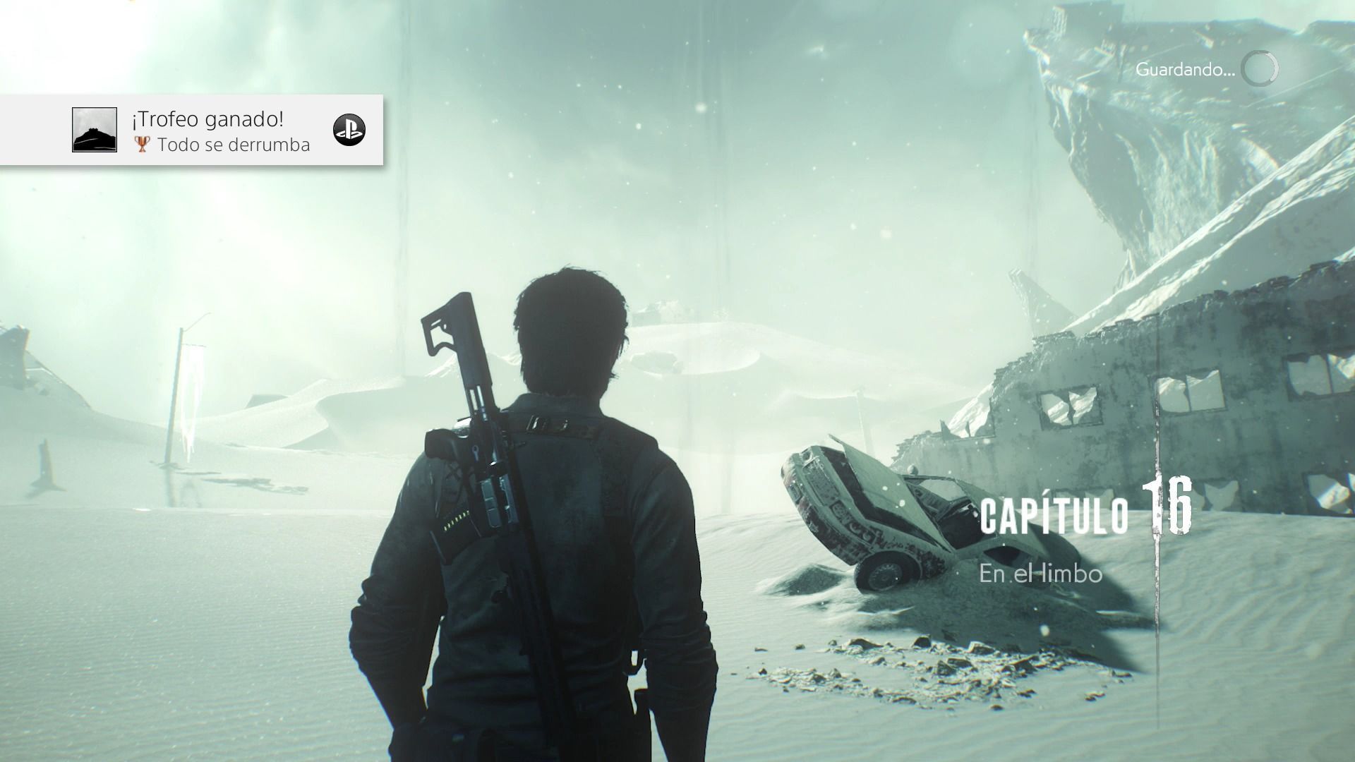 Tras derrotarle vuelve a explorar la zona en busca de objetos que hayan podido quedar y cuando salgas de la zona tendrás una escena que te llevará a otra zona. Al poco de andar en esta zona conseguirás el Logro / trofeo Todo se derrumba y finalizará el capítulo.