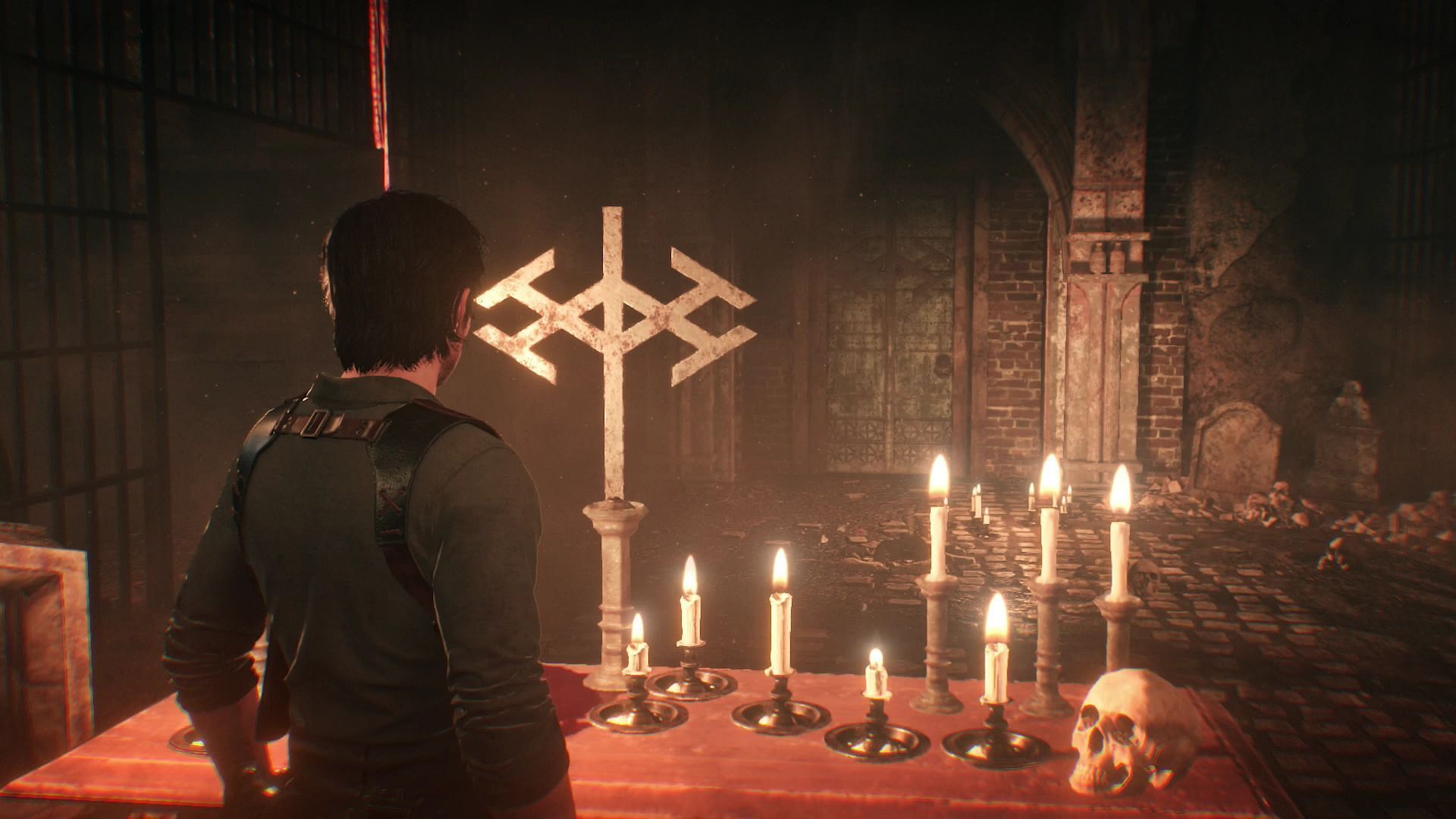 Este capítulo comienza en la habitación de Sebastián. Entra en la sala principal y avanza recto para descubrir que en vez del espejo hay una especie de cruz. Cuando la examines tendrás una escena que te lleva a unas catacumbas