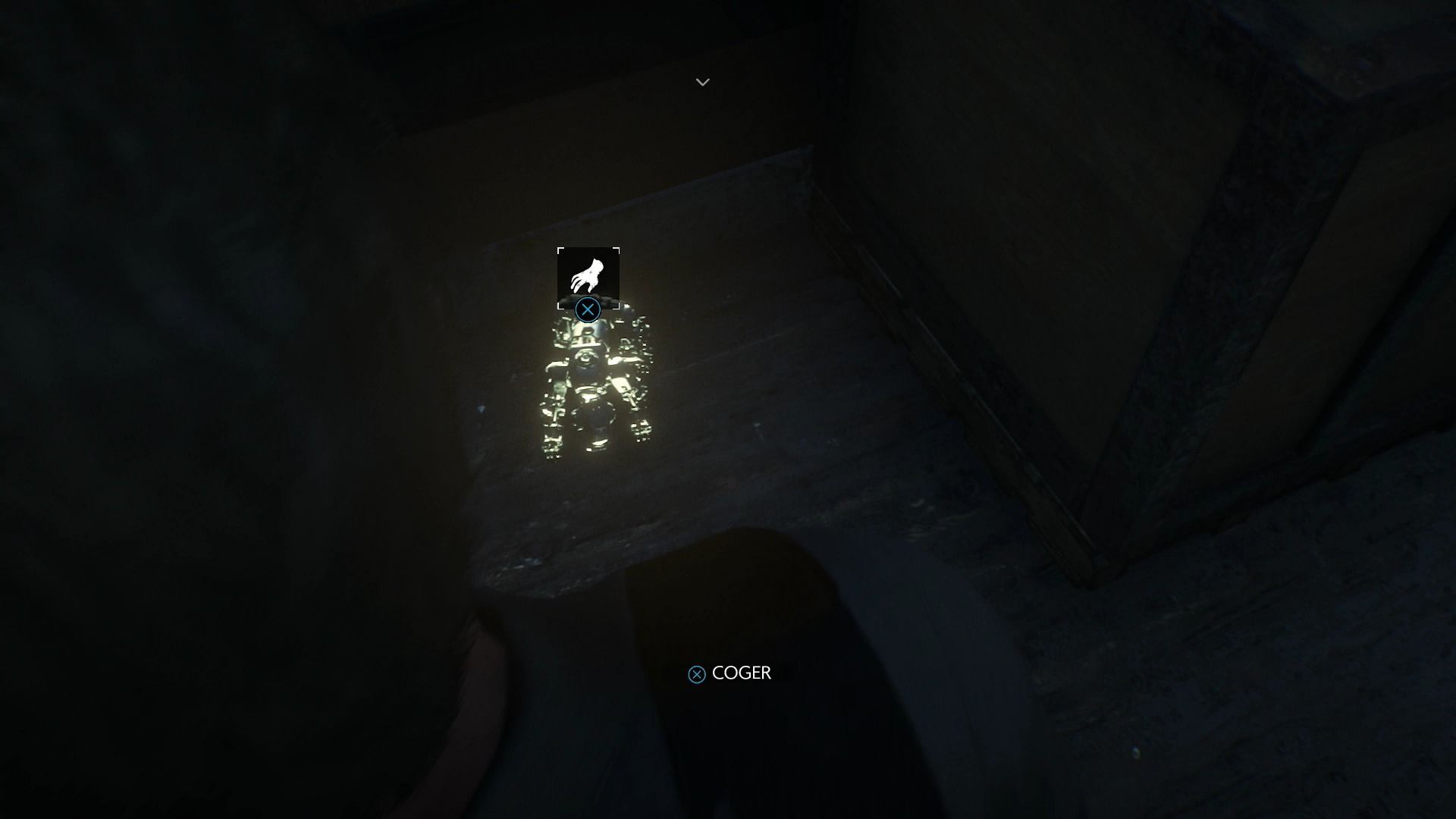 Tras recoger el objeto misterioso anterior debes entrar en el almacén. Una vez dentro sigue el camino hasta subir a la segunda planta y luego entra en la primera sala que verás para ver el coleccionable.