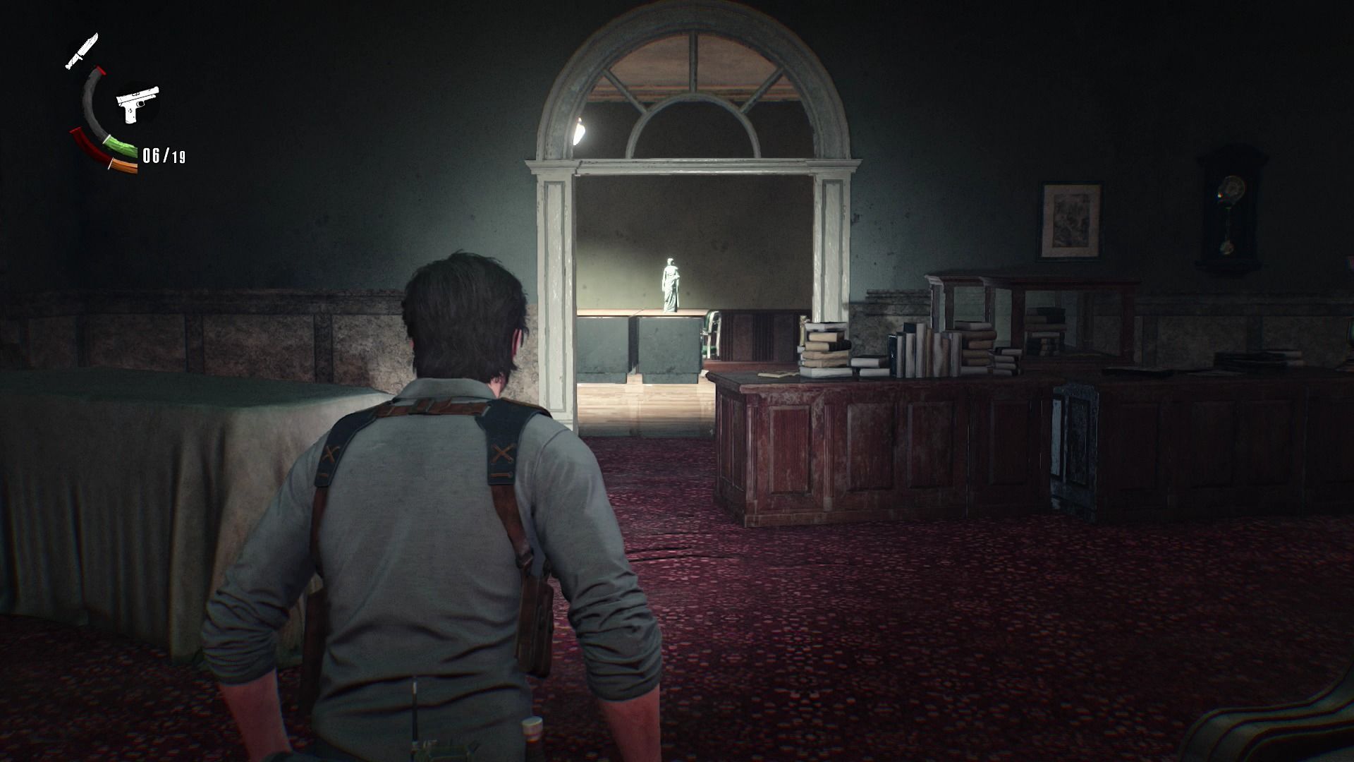 Tras recoger el coleccionable anterior vuelve a la primera planta y entra en la sala de exposición para ver que hay un nuevo pasillo en el que encontrarás la estatuilla que contiene la llave.