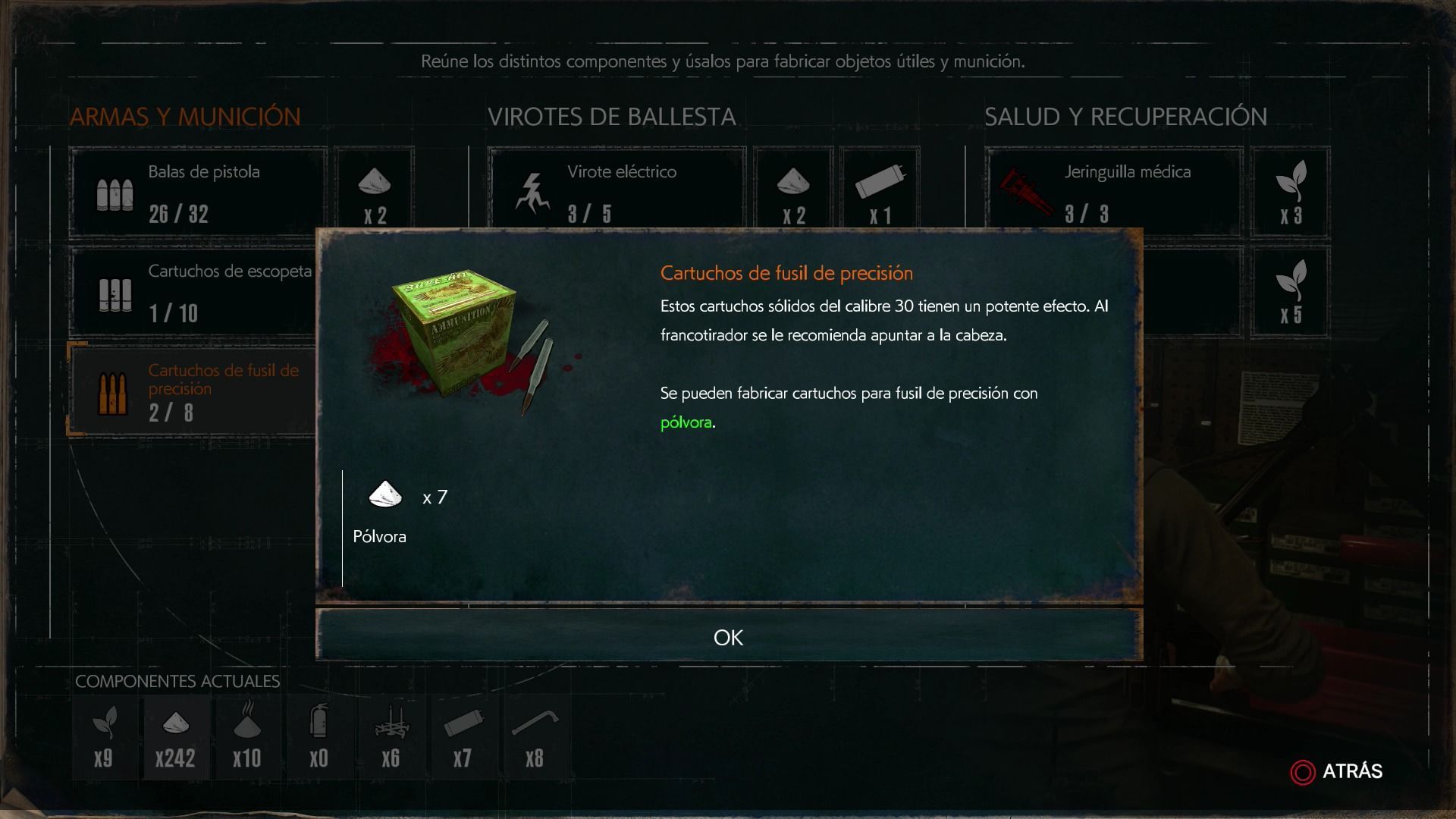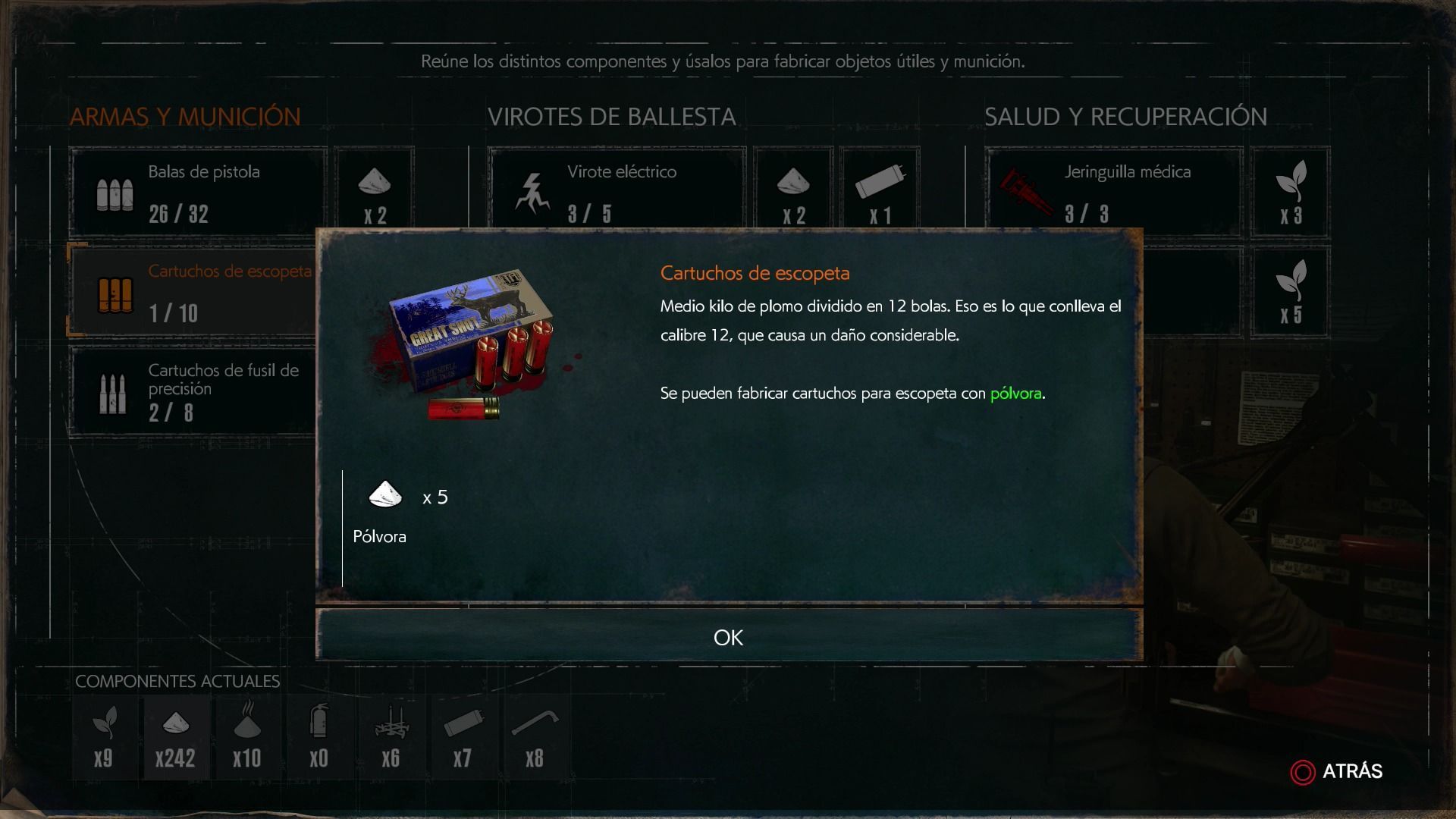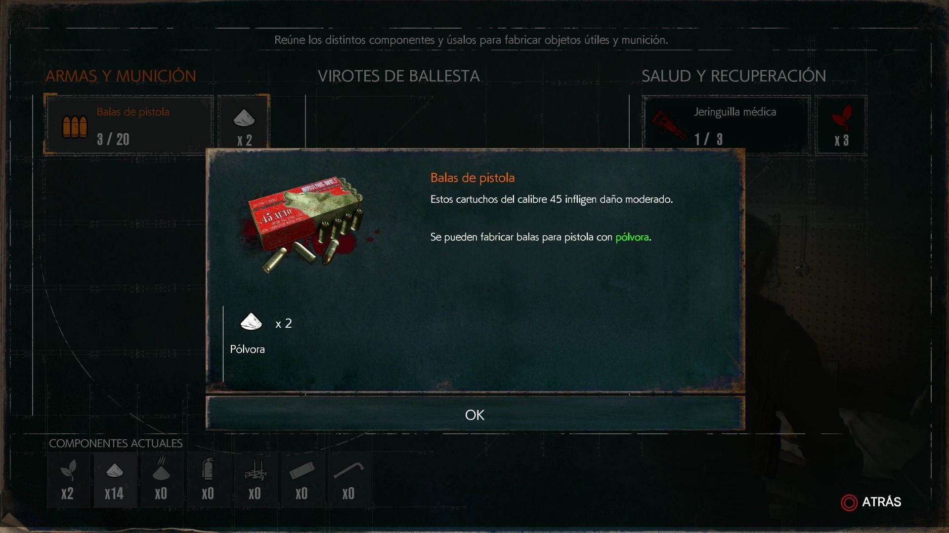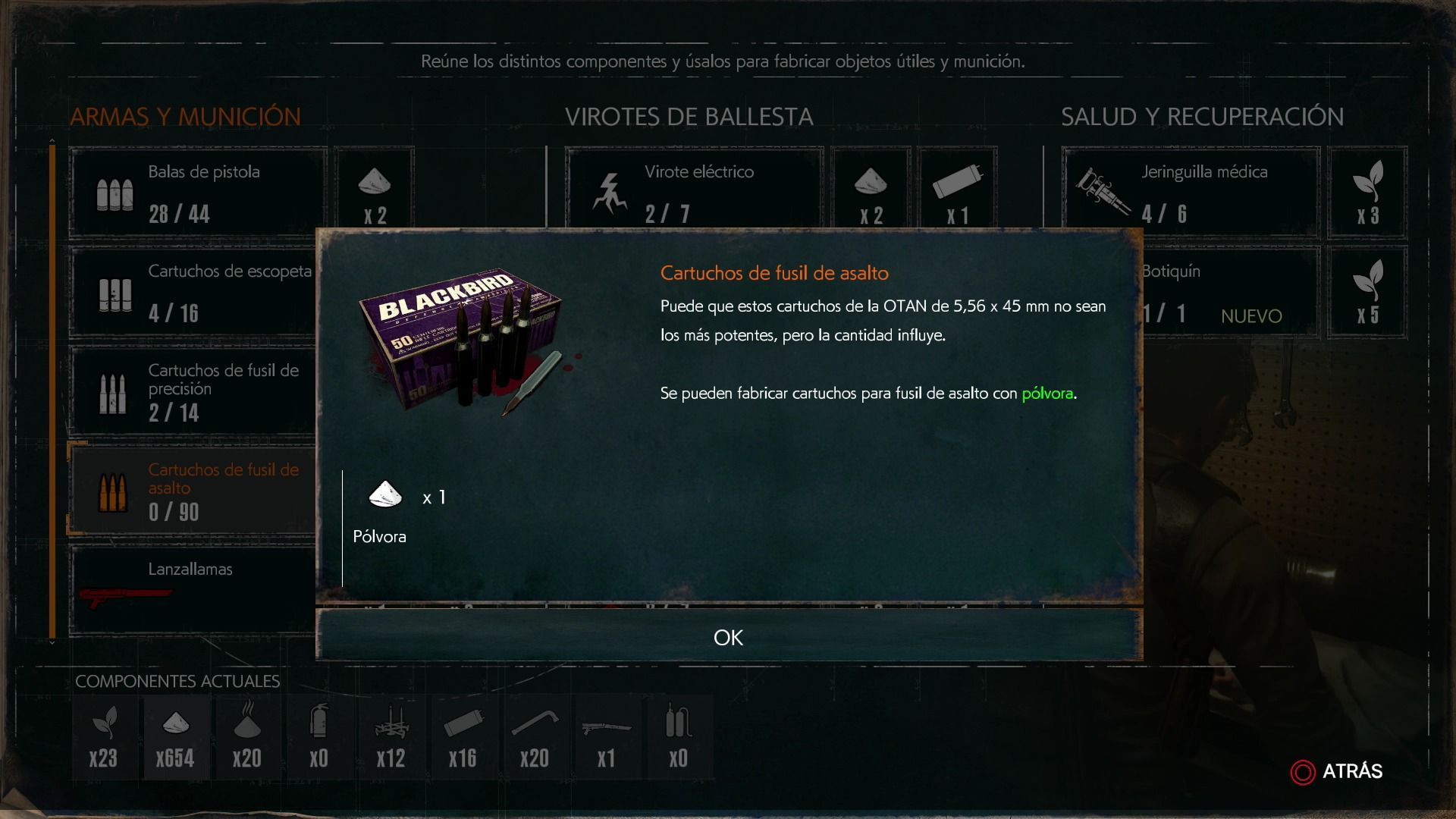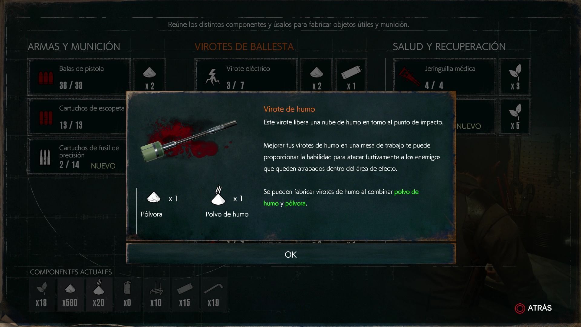 - Componentes necesario: Pólvora x1, Polvo de humo x1.