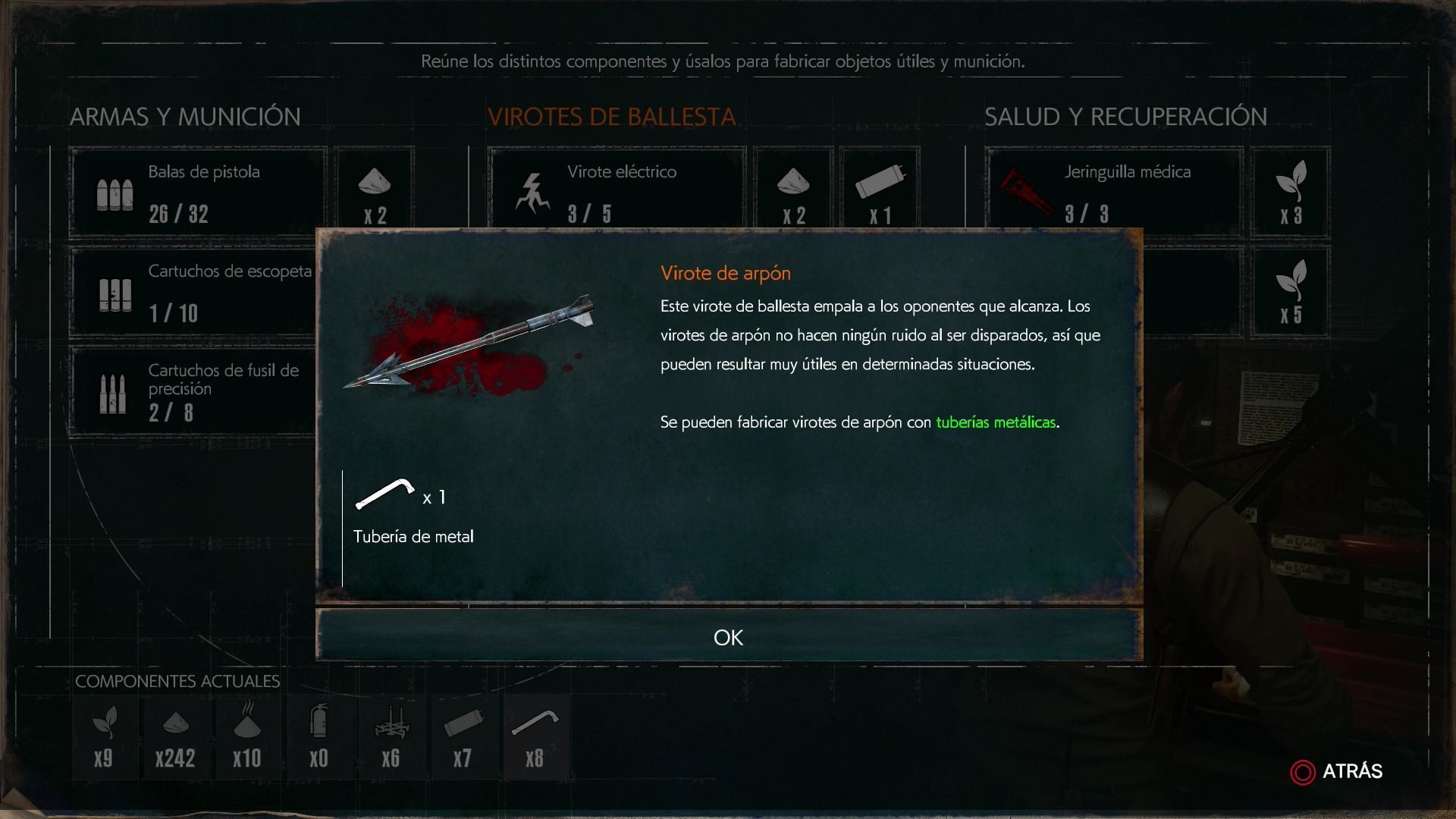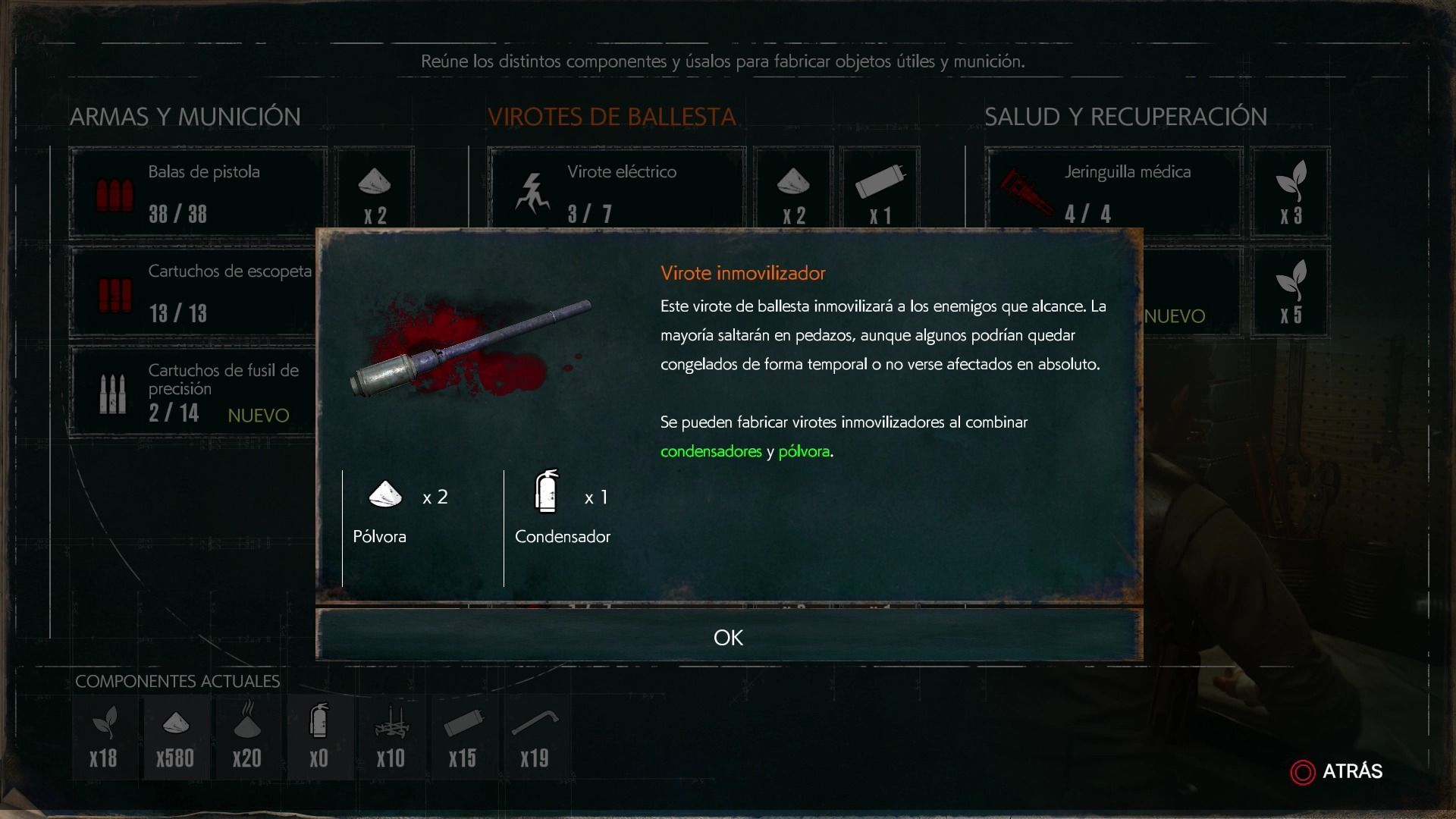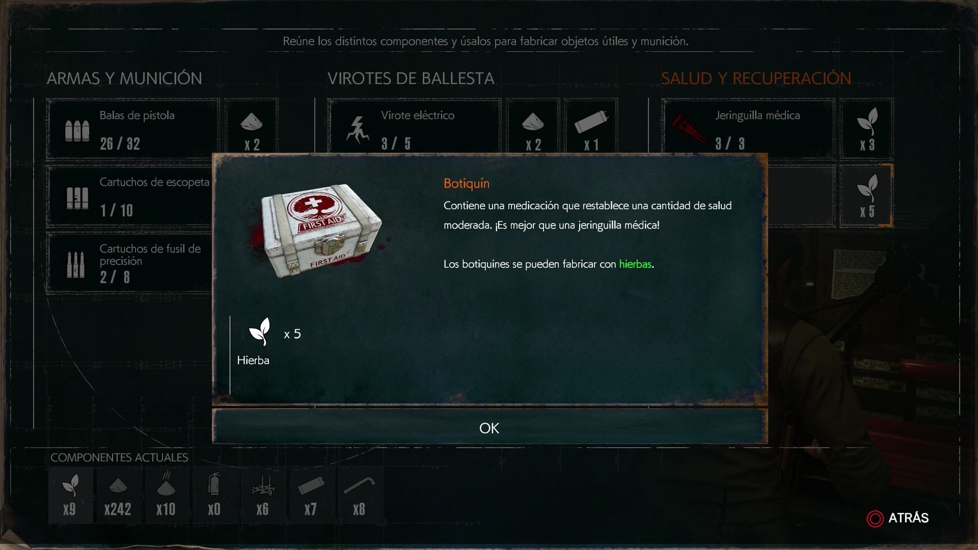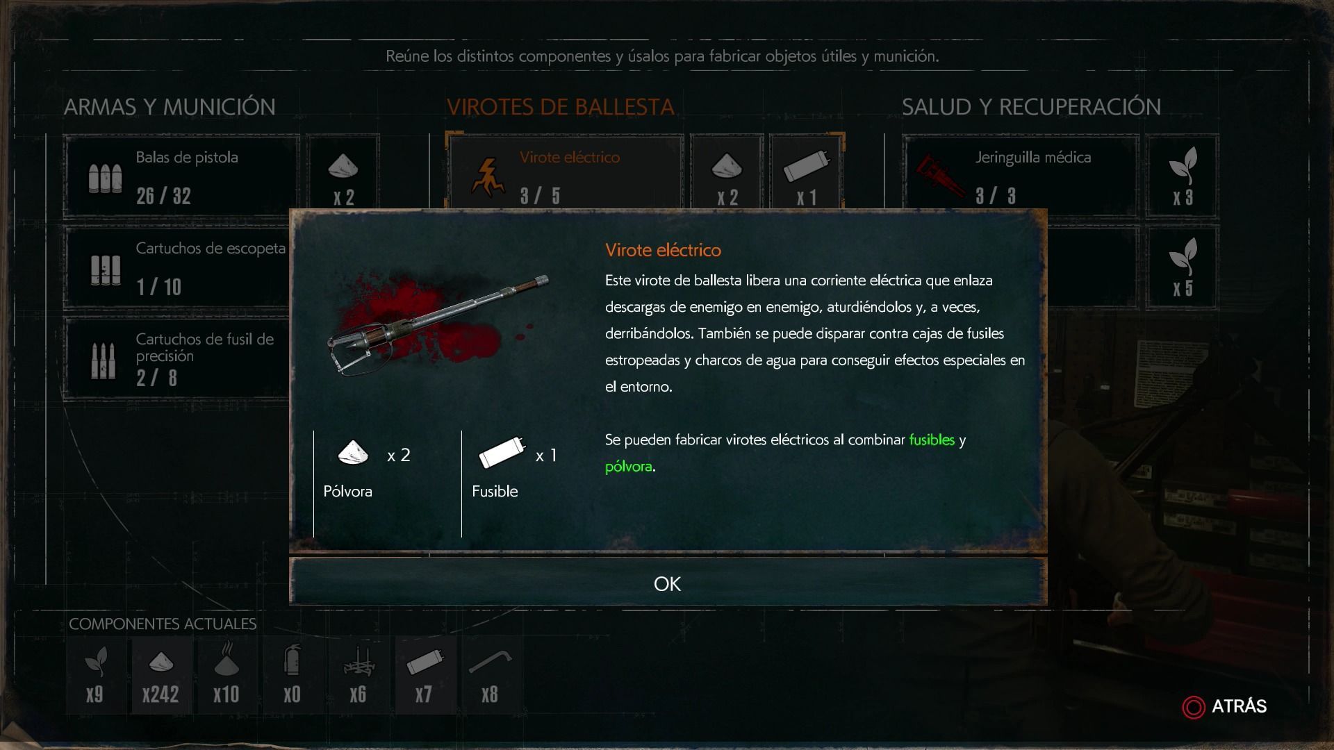 A continuación encontrarás un listado de los objetos que puedes fabricar y los componentes necesarios: