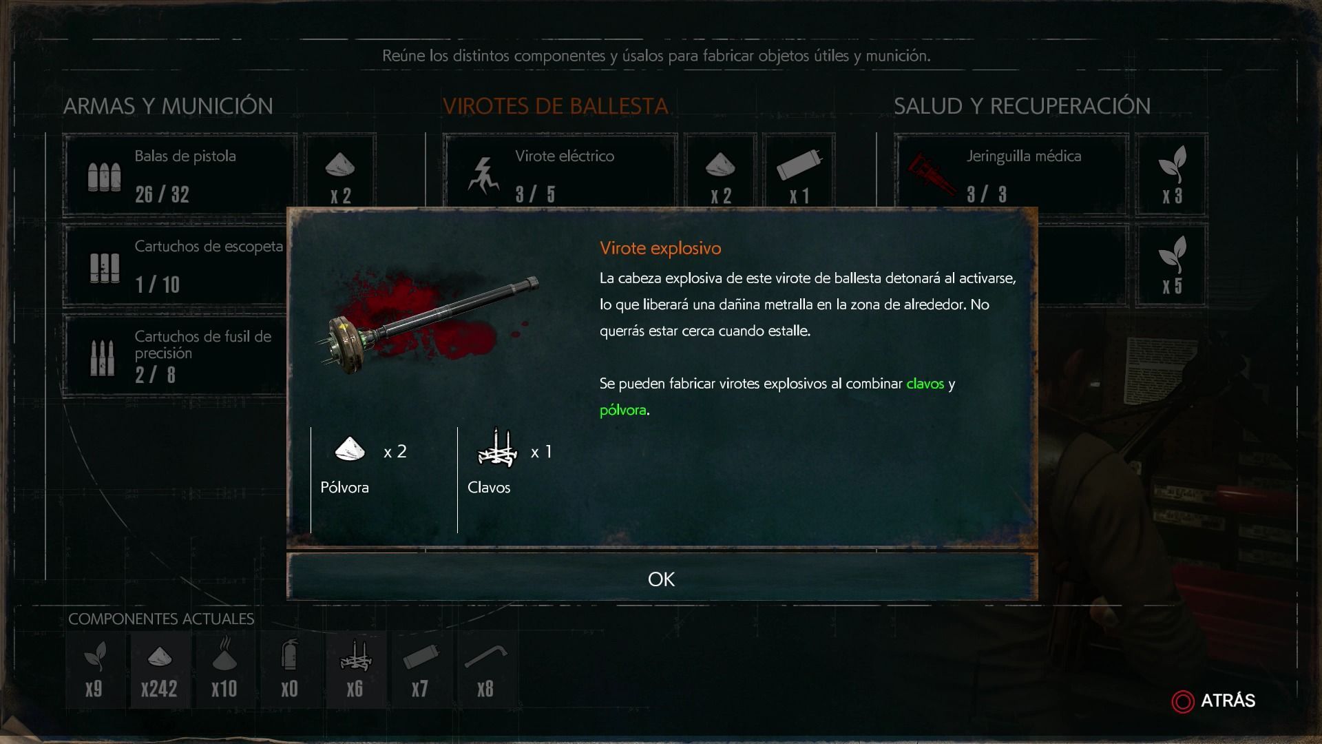 - Componentes necesarios: Pólvora x2, Clavos x1.