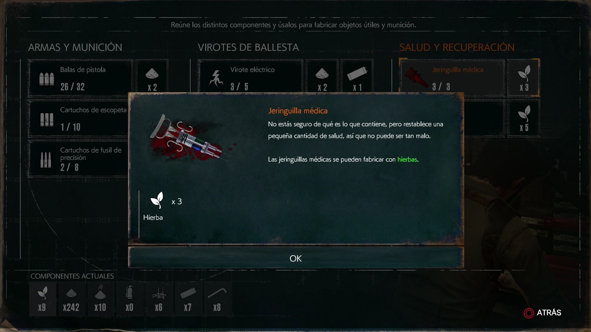 - Información: Contiene una medicación que restablece una cantidad de salud moderada. ¡Es mejor que una jeringuilla médica!