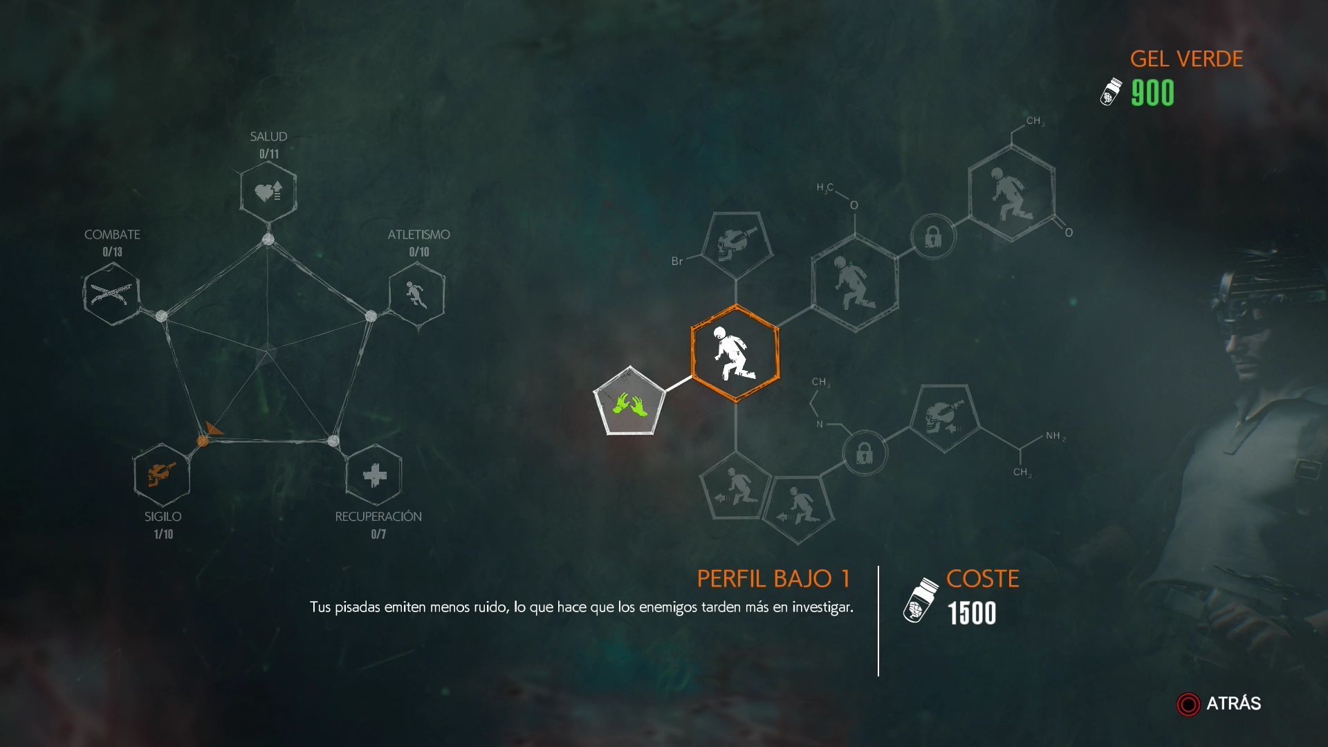 Tus pisadas emiten menos ruido, lo que hace que los enemigos tarden más en investigar.