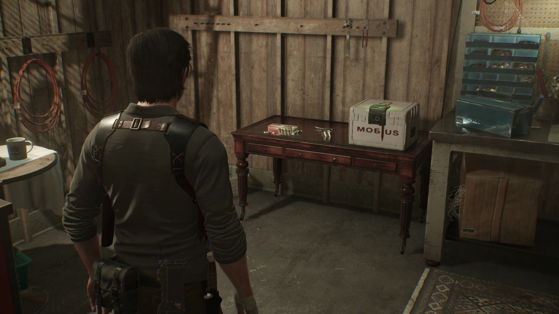 Se pueden usar las mesas de trabajo para fabricar munición y objetos a partir de componentes; y mejorar las armas con piezas de armas.