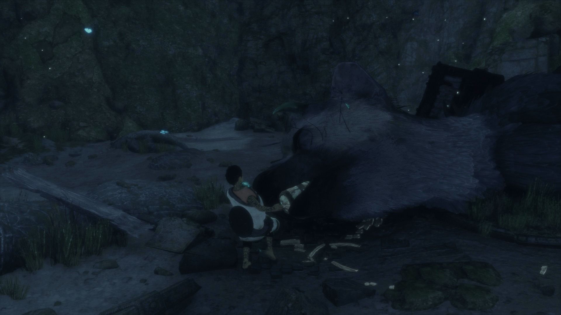 Nos metemos por la pequeña gruta, y al caer vamos hacia la derecha, para quitar el tablón de madera y abrir la puerta, para que Trico pueda pasar. Si seguimos avanzando por el túnel, a la derecha, veremos una cadena de la que tenemos que tirar, y mantenerla agarrada un rato para que Trico intente pasar. Al final Trico se quedará atascado, después sepultado, y tendremos que salir a duras penas de este lugar, dejando al animal atrás. Cuando consigamos salir al exterior unas estatuas enemigas nos sorprenderán. Huid de ellas y volver hacia atrás, y al final aparecerá Trico nuevamente, que luchará con ellas.