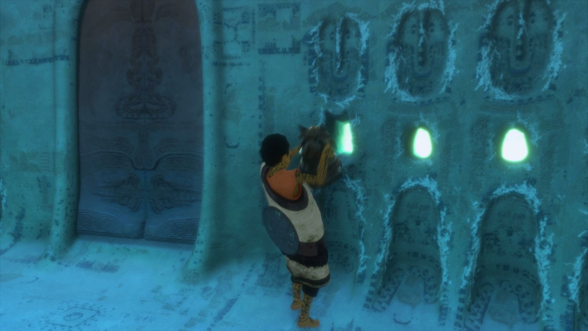 Cada vez que una estatua comience a seguirnos, lo que tenemos que hacer es echar a correr a la sala central, saltar el vacío hacia el otro lado para que el enemigo no pueda seguirnos, y después apuntarle con el espejo para que Trico lo destruya con la cola. Esta misma acción habrá que realizarla varias veces, con cada uno de los enemigos, así que os recomendamos que nunca despertéis a varias estatuas a la vez, y siempre que una os comience a seguir, volváis a la sala central y la destruyáis. No es complicado, pero sí laborioso, y hay que ser pacientes.