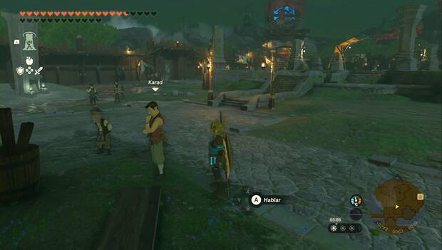 Si aún no la has puesto en marcha, se activará El establo en construcción. Tras completarla, habla de nuevo con Karad y regresa al puente colgante. Debes entregar 20 montones de leña, que puedes sacar destrozando troncos de árboles.