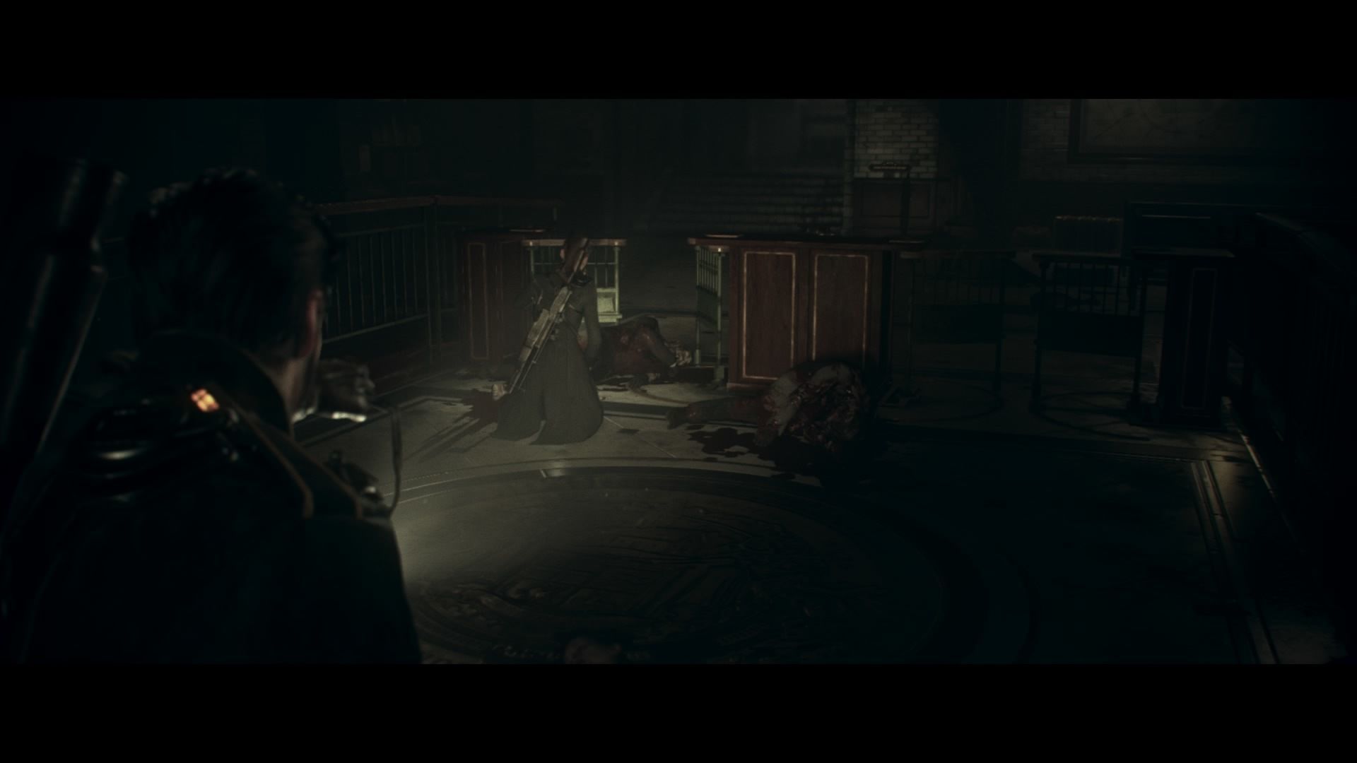 Al llegar al edificio verás que no es un lugar muy acogedor. Más bien todo lo contrario, no hay mucha luz y la presencia de los hombres lobo se puede notar. A la entrada verás varios cuerpos y uno es interactivo. Investiga la mesa del fondo y ve por los pasillos, hay más rebeldes aislados. Galahad se separa de Igraine y toma el camino más oscuro.