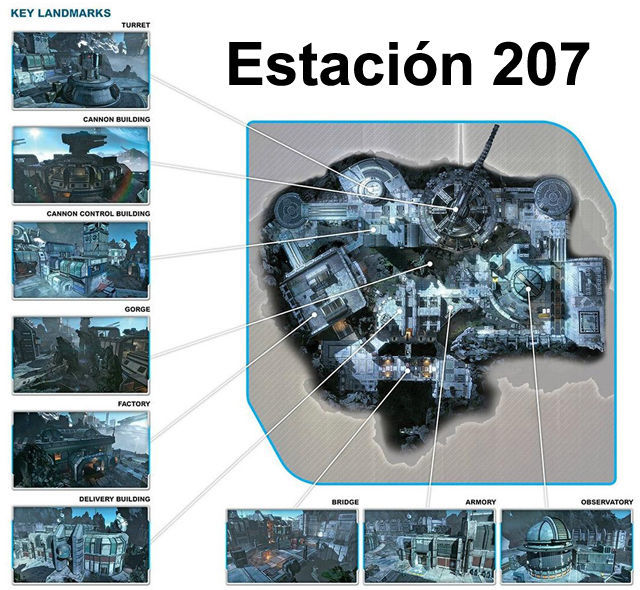 Abarca la zona superior izquierda del mapeado, hay una torreta y un edificio cerca de la entrada al cañón orbital, el edificio de control del cañón y abajo la factoría. Desde el edificio de control del cañón podemos controlar toda la zona de la torreta, la zona baja y el edificio de la zona azul. Desde la factoria tenemos una amplia visión también de toda la zona central y las ventanas y tejados de ambos lados así como de los Titanes que rondan por la zona.