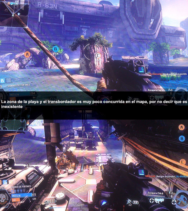 Abarca toda la zona con agua y la nave, muy amplia para Titanes aunque no se usa nada. Toda la acción se desarrolla en las otras 2 zonas, aunque alguna vez algún Piloto se pone desde el interior con el rifle Kraber.