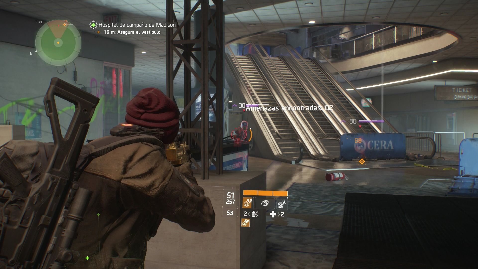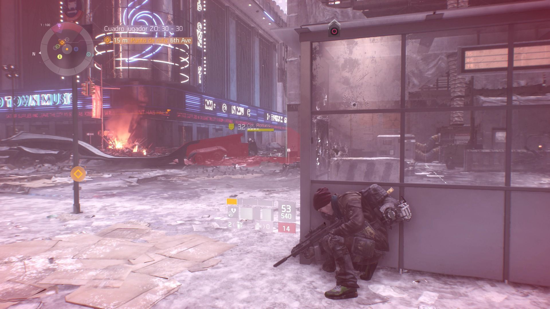 Durante tus enfrentamientos en The Division, lo más recomendable es buscar puntos elevados desde los que acabar con tus enemigos con mayor facilidad. La mayoría de posiciones elevadas tienen muros y barreras en los que puedes protegerte de los disparos enemigos para no sufrir daño y buscar el momento oportuno para dispararles.