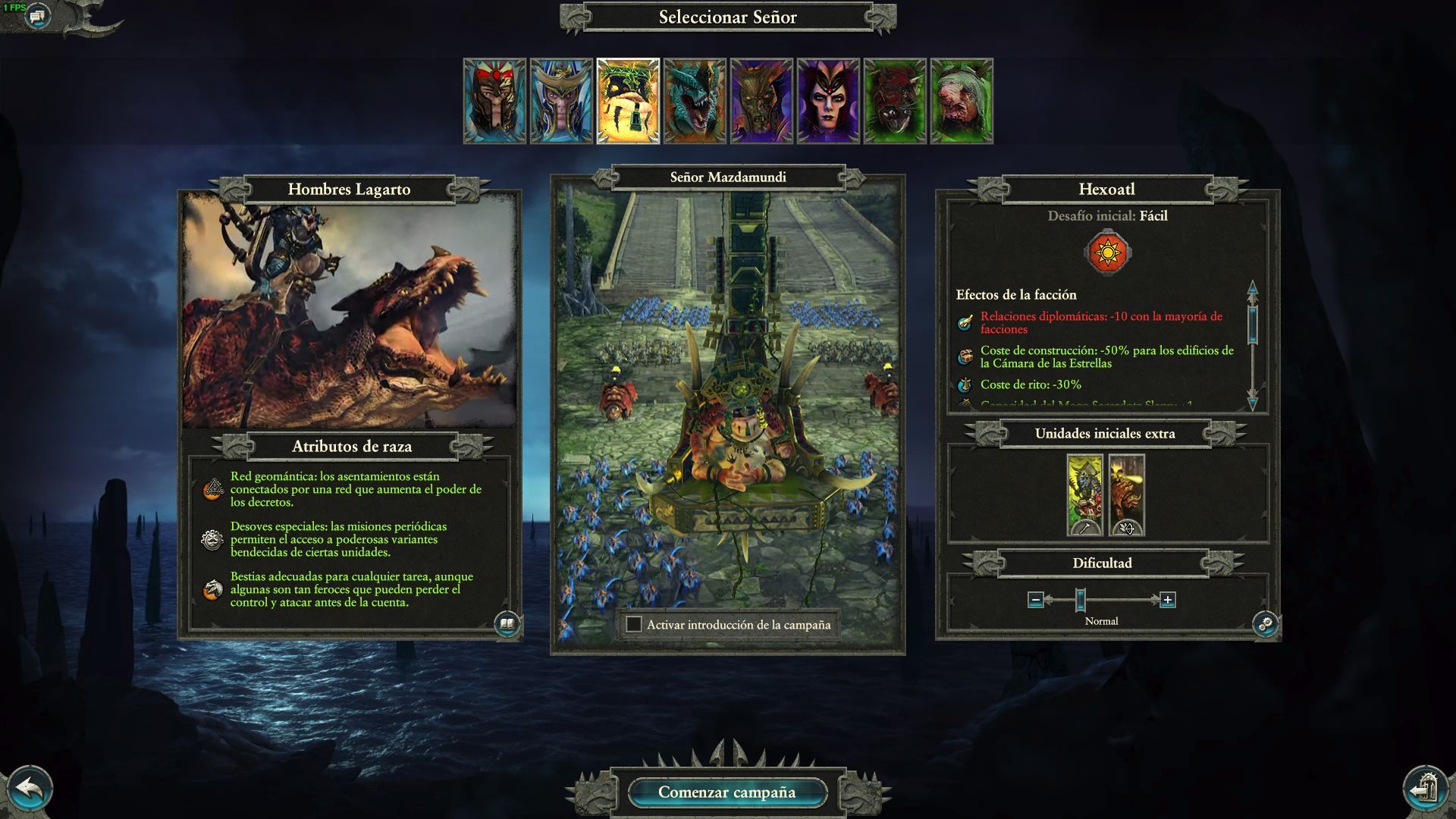Luego, dentro de estos ejércitos, el juego nos indica que Tyrion en los elfos y el Señor Mazdamundi en los lagartos son los dos señores con un inicio más fácil en la campaña por lo que, por lo menos en un primer contacto, te recomendamos que escojas a uno de estos dos.