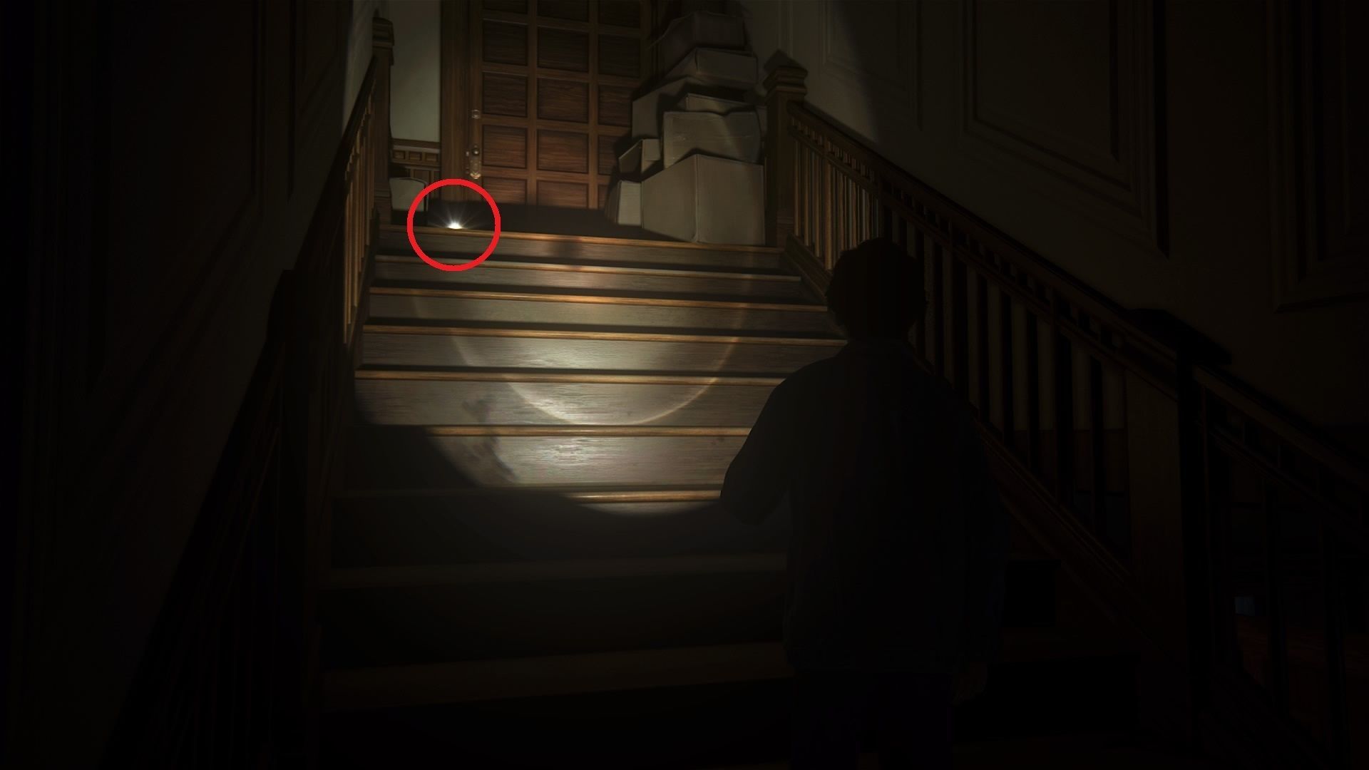En el altillo, puedes examinar dos cajas y una carta. Sam abrirá la trampilla y podrás ir abajo, donde hay otra caja que se puede cotillear. Entra en la habitación de la izquierda, coge la carta y, acto seguido, activa la conversación opcional.