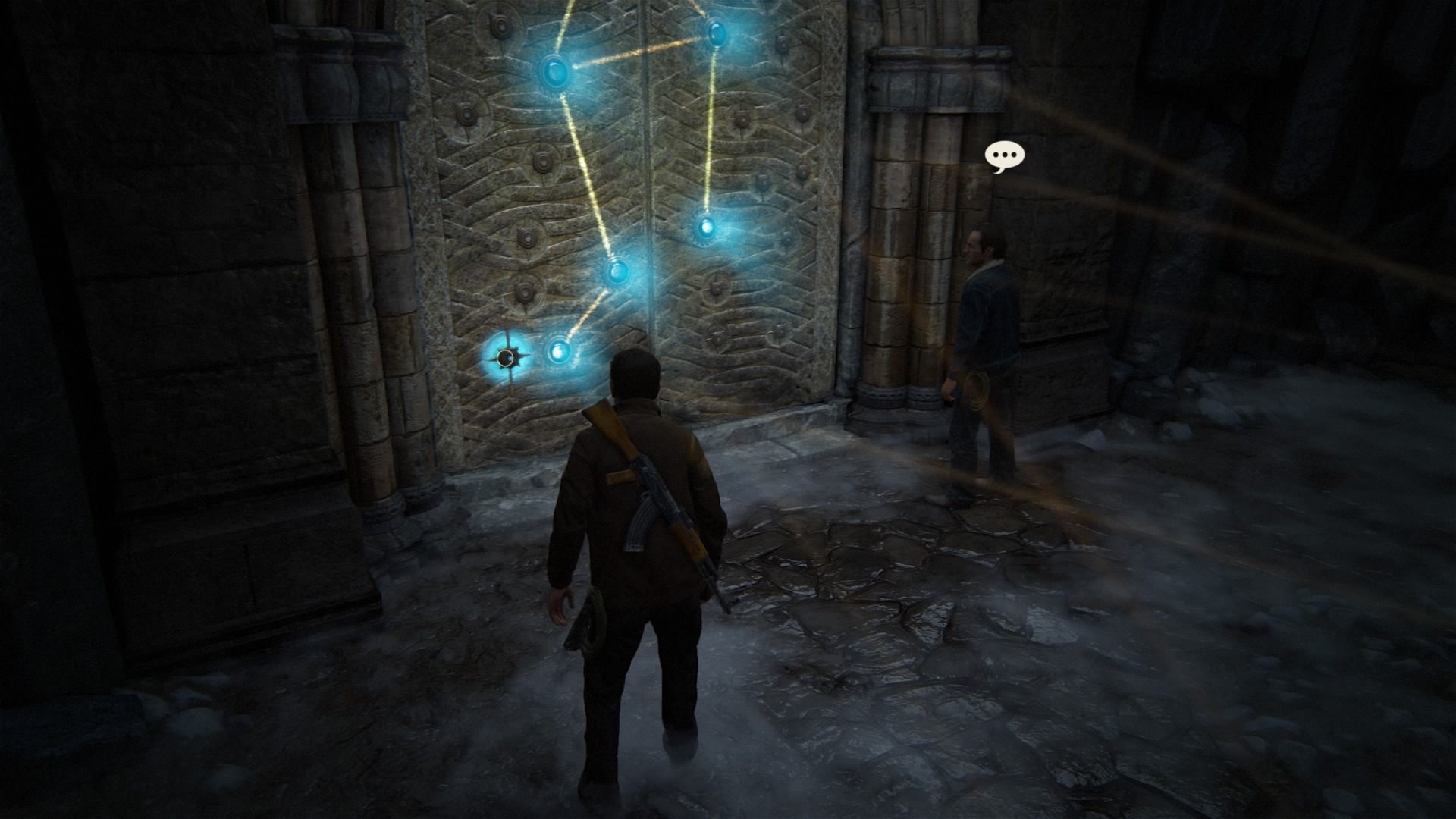 Conversación opcional #7: después de resolver el puzle de las tres estatuas y antes de examinar el mecanismo de la puerta, habla con Sam.