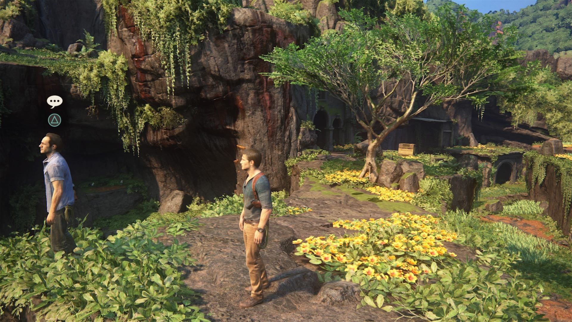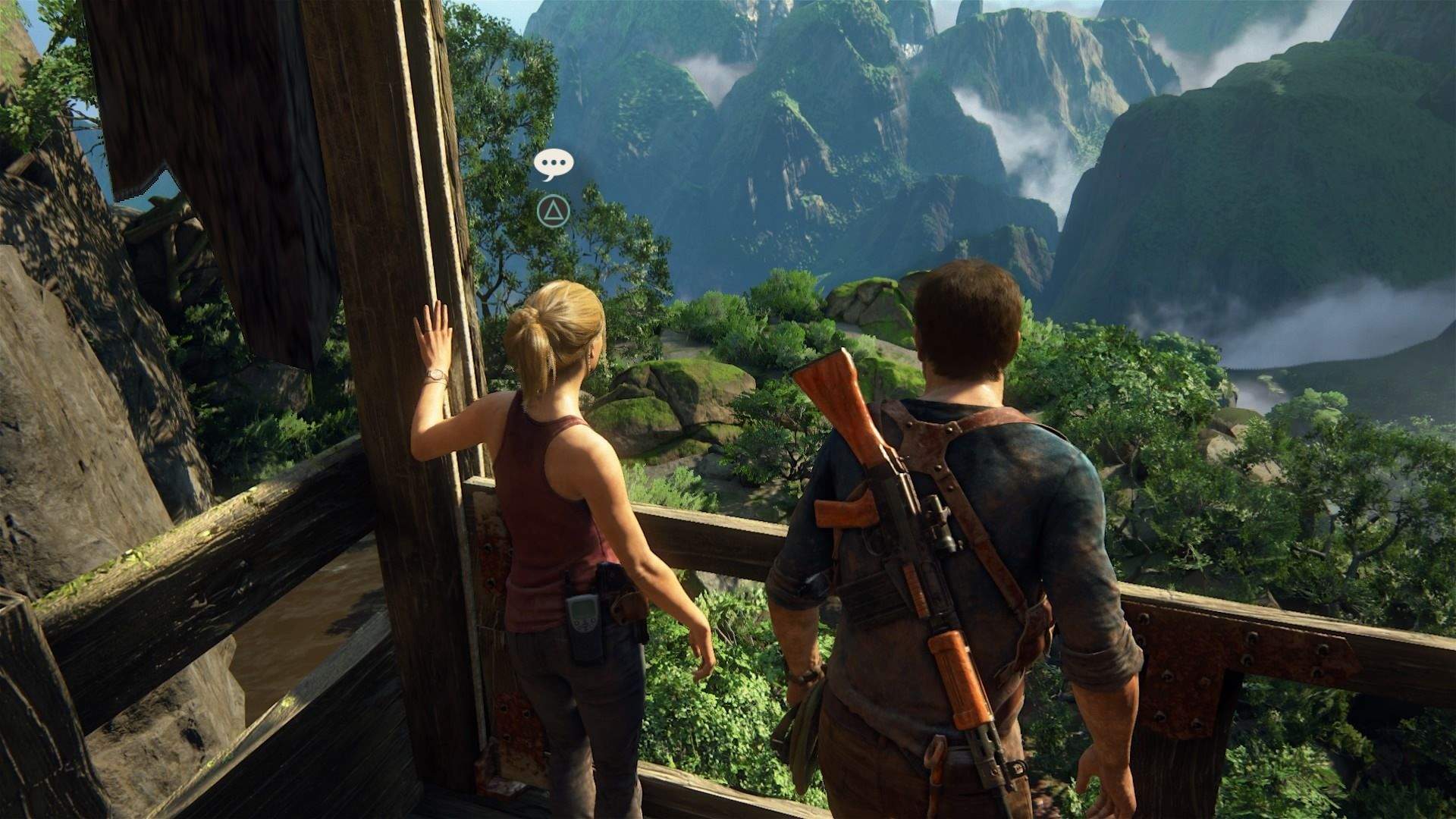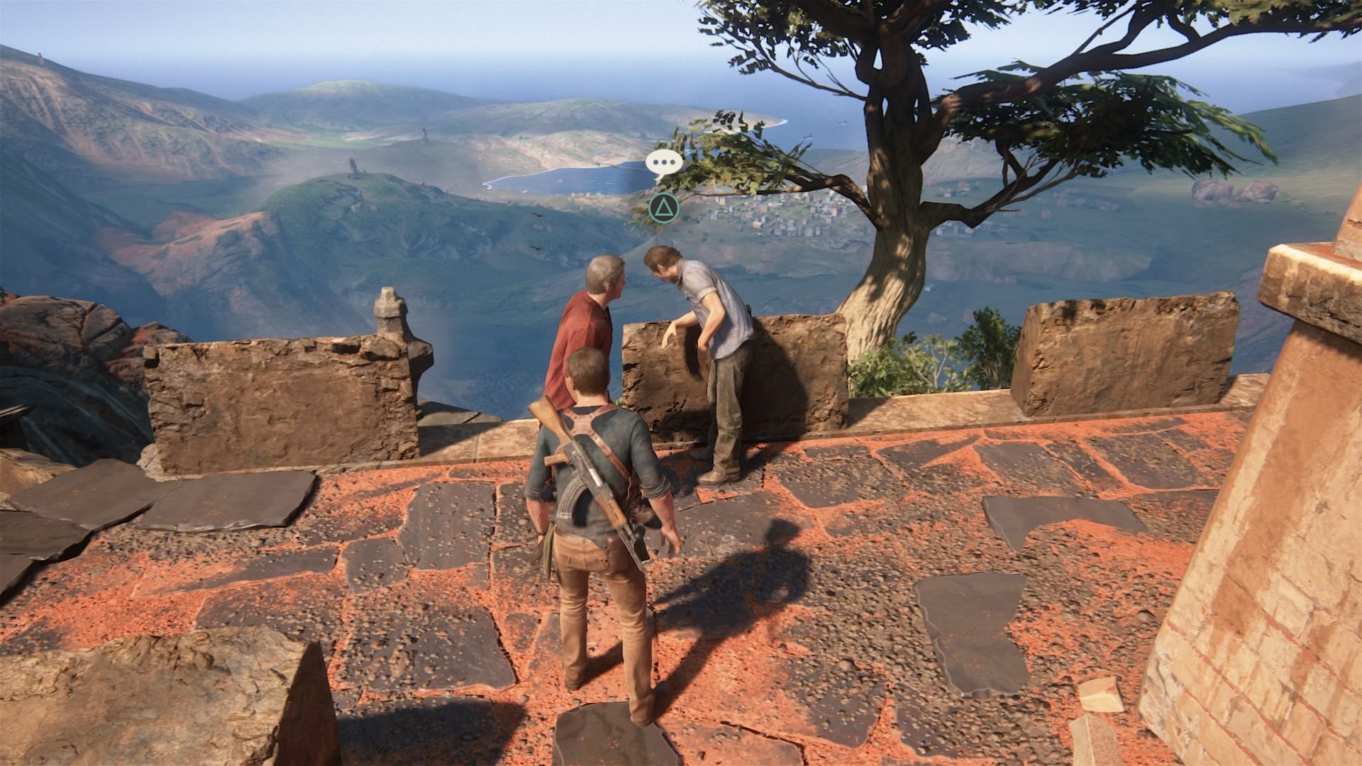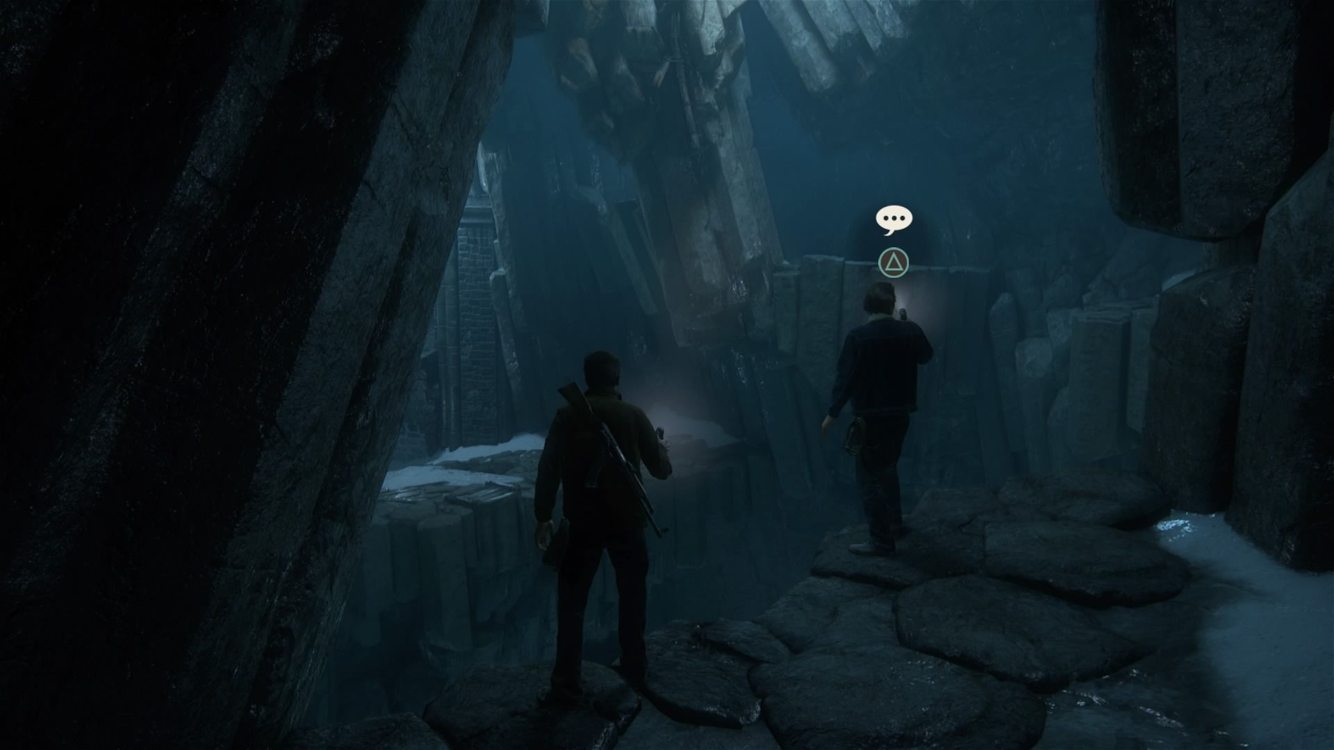 Conversación opcional #12: cuando te reúnas con Sam después de que os separéis por el puente que se rompe, ve hasta la punta del risco y habla con él.