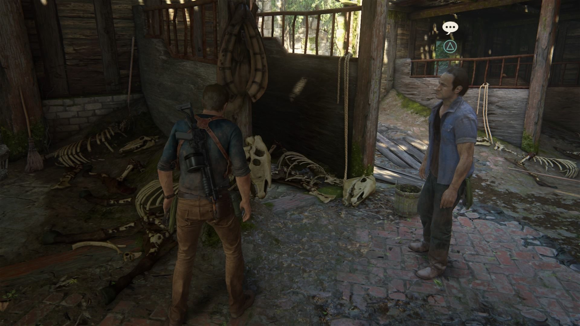 Conversación opcional #17: se puede activar justo después de examinar el caballo muerto en el establo (segunda casa a la izquierda al llegar a Libertalia).