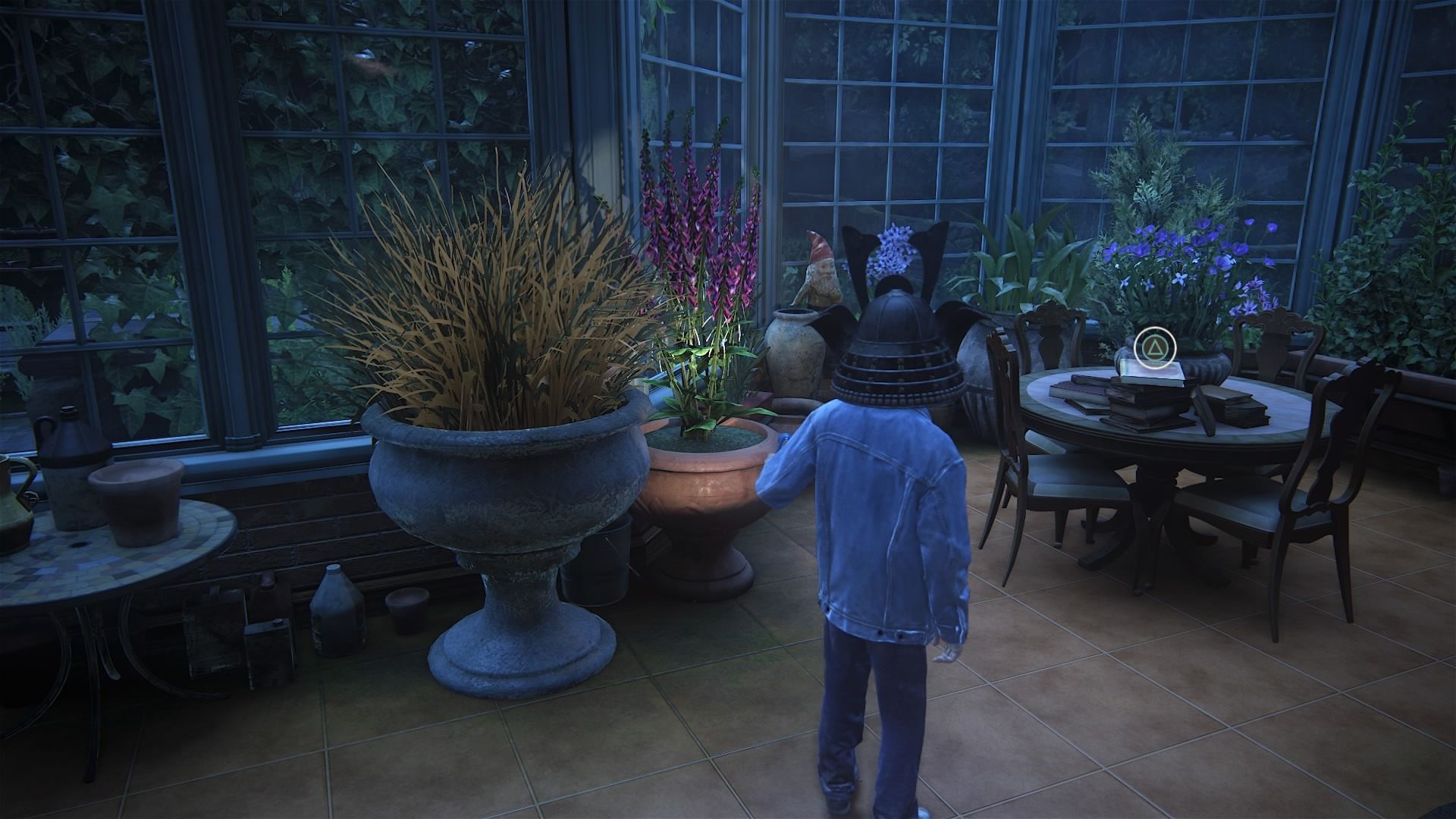 Conversación opcional #13: en el edificio de las estatuas al que llegas desde la segunda torre, examina todos los objetos que permiten interacción en la sala del diorama y luego examina la mesa de la otra sala.