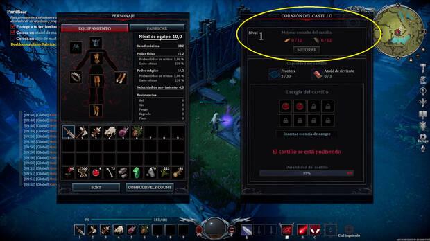 Los castillos se pueden mejorar mucho en V Rising, obviamente, pero la cantidad de estructuras que tengas en su interior depende, en realidad, del corazón del castillo. Esta es la clave para mejorar y poder ampliar tu castillo.
