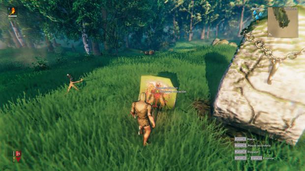 - Puedes usar como armas una Lanza de sílex y un Escudo de madera. Sus ataques se pueden bloquear con facilidad con el escudo y la lanza te permitirá aturdirlo si le das rápidamente.