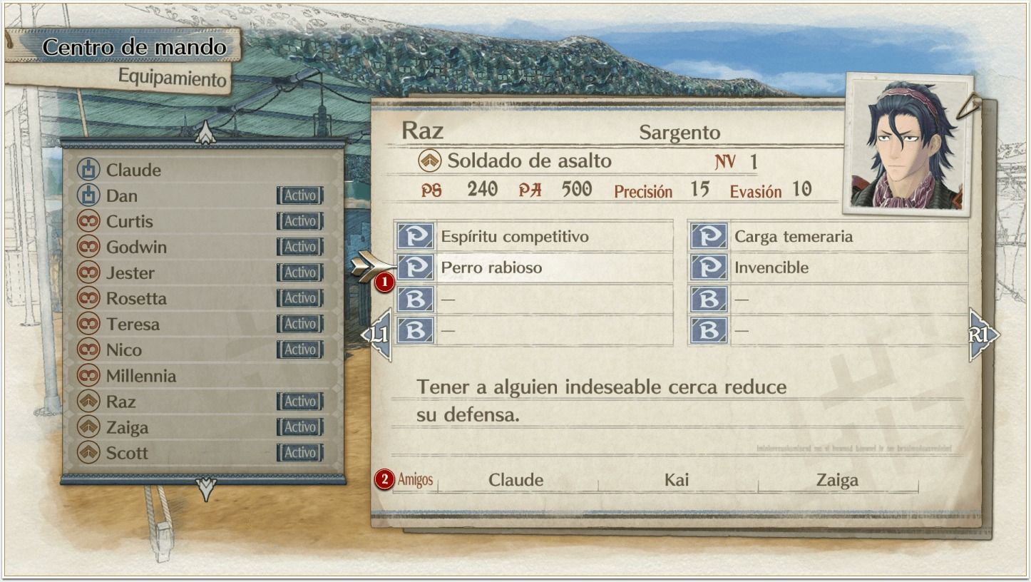 Intercambia compañeros activos de tu grupo, modifica su equipo y estudia la información de los personajes. Aquí verás su personalidad, los rasgos que hacen que rinda mejor o peor en el combate según el entorno, los compañeros, la situación, etc.