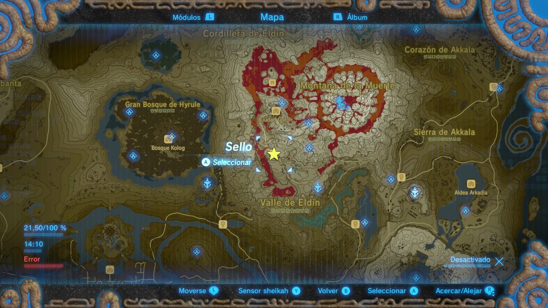- Después tendremos que buscar a un goron fuerte. Tendremos que dirigirnos a la región de Eldin y hablar con Kadunia en la Mina meridional, cuando esté sentado junto a la cacerola por la noche. Os indicamos dónde se encuentra en el mapa.